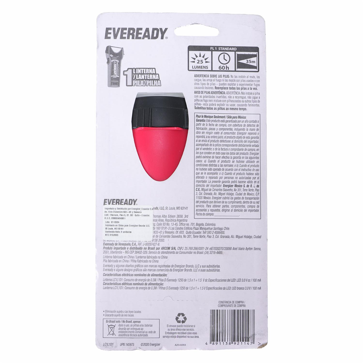 Led 1 D Plastic Light W/B ENERGIZER Unidad – ENERGIZER. Disponible en nuestros locales. Precio y stock pueden variar según la tienda.