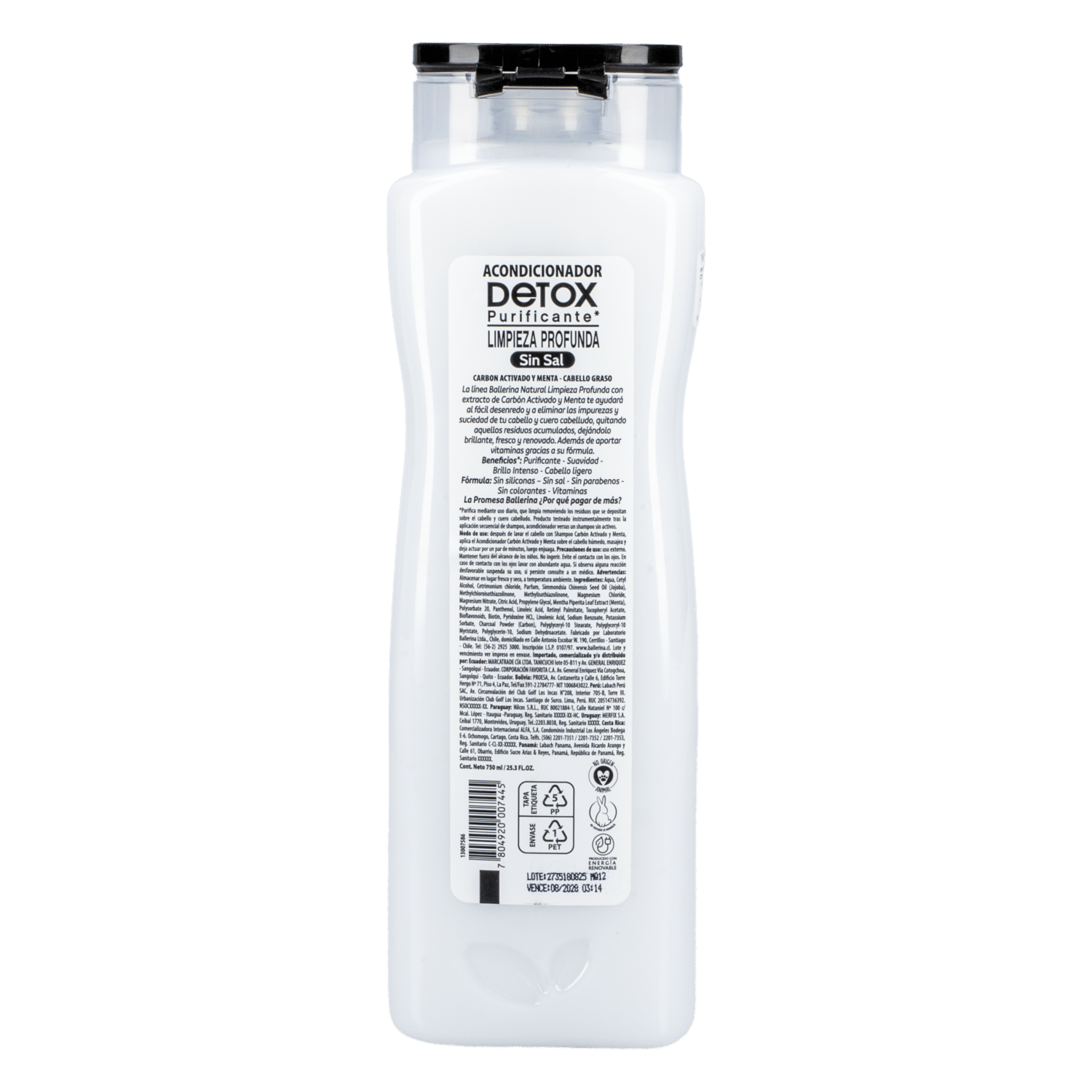 Acondicionador Detox Purificante Carbón Activado Y Menta BALLERINA 750 Ml