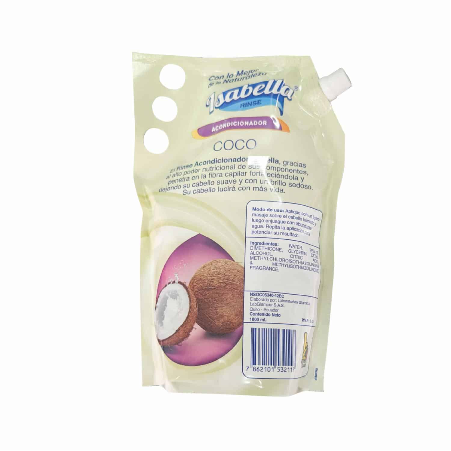 Rinse Acondicionador Capilar Pasión Coco ISABELLA 1000 Ml – ISABELLA. Disponible en nuestros locales. Precio y stock pueden variar según la tienda.