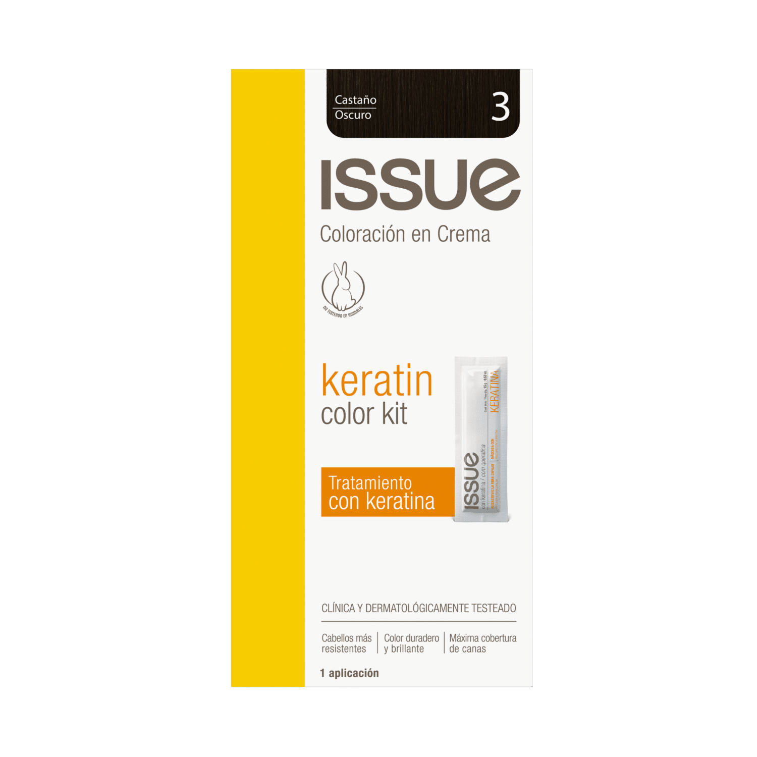 Tinte De Cabello Keratin Color N° 3 Castaño Oscuro ISSUE 1 Kit – ISSUE. Disponible en nuestros locales. Precio y stock pueden variar según la tienda.