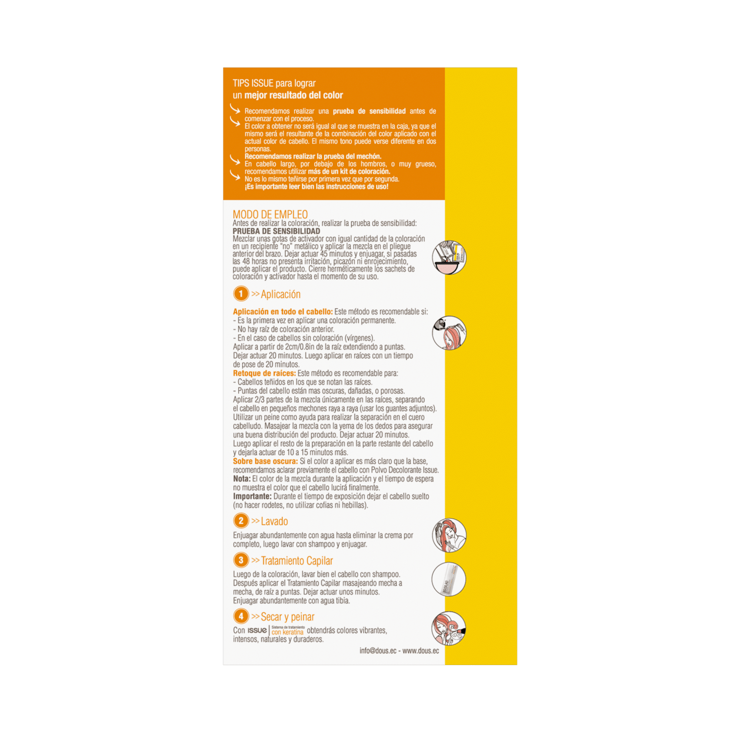 Concepto innovador en coloración, aporta al cabello un color más duradero y brillante. Posee una exclusiva formulación de alta calidad, con Vitamina C que permite preservar los colorantes de una oxidación prematura. Integra todos los componentes necesarios para la aplicación del color que permiten lograr un resultado efectivo y duradero. Contiene: 1 Coloración en Crema (sachet). 1 Activador en crema (peróxido). 1 Juego de Guantes. 1 Sachet de Máscara con Keratina o Tratamiento Pre y Post Color