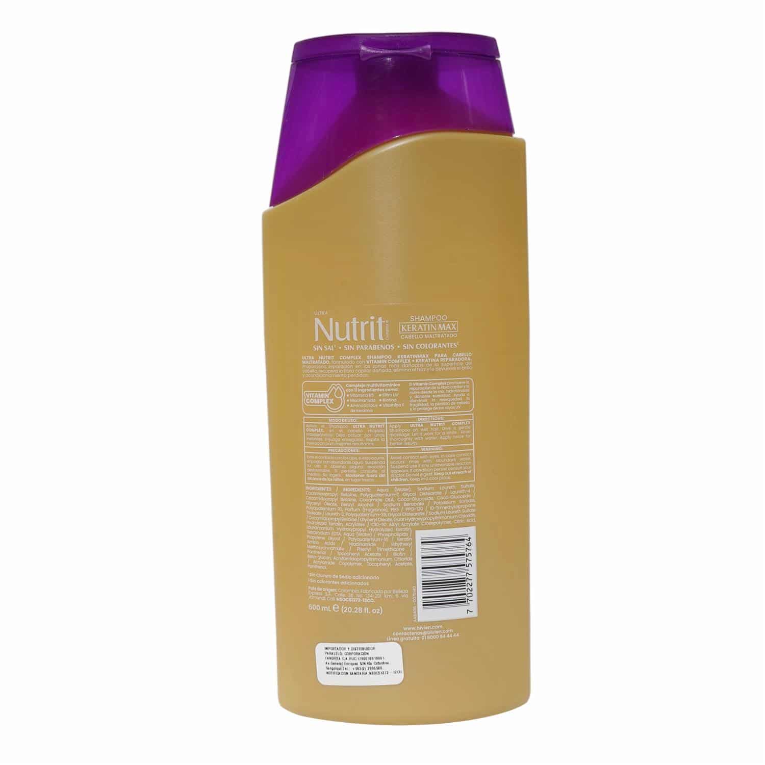 Shampoo De Cabello Keratinmax Keratina Reparadora + Vitamin Complex NUTRIT 600 Ml – NUTRIT. Disponible en nuestros locales. Precio y stock pueden variar según la tienda.