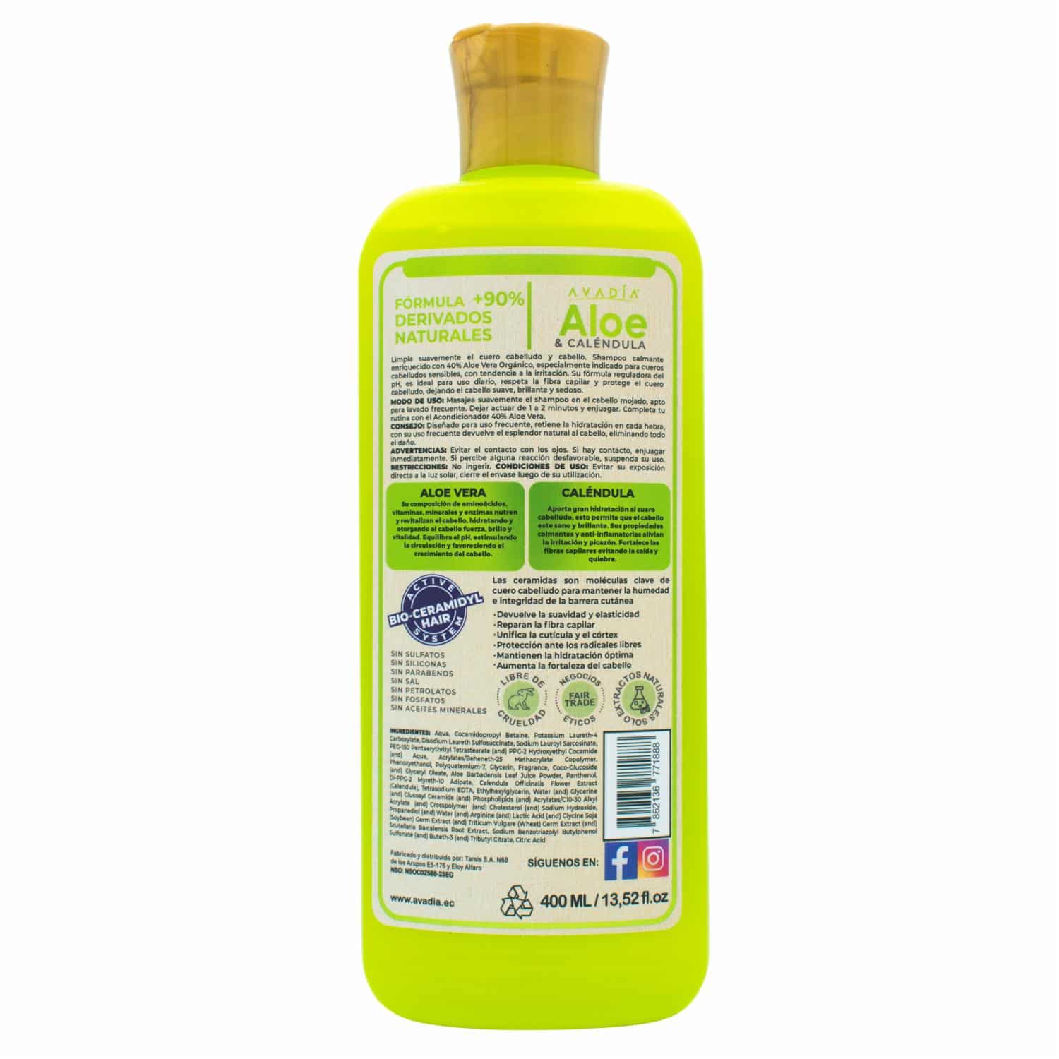 Shampoo Para Cabello Ortiga Plus Anticaída Biosensitive 40% Aloe Y Caléndula AVADÍA 400 Ml