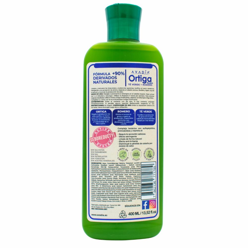 Shampoo Para Cabello Ortiga Plus Anticaída Seboregulador Trichogen, Ortiga, Te Verde Y Romero AVADÍA 400 Ml