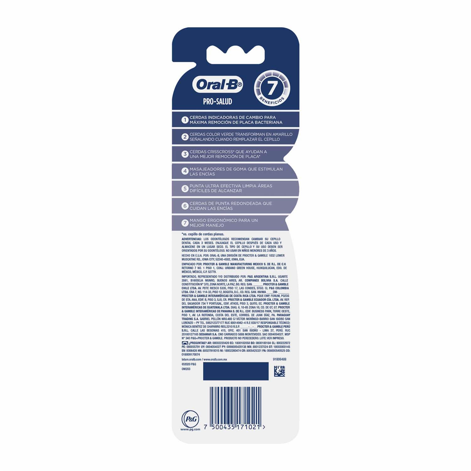 • El Cepillo De Dientes Oral-b 7 Beneficios Control-bac Es El Cepillo De Dientes Que Cuenta Con Tecnología Crisscross Control-bac Estas Cerdas Indicadoras De Color Verde Se Transformarán En Amarillo, Son Un Indicador De Cambio