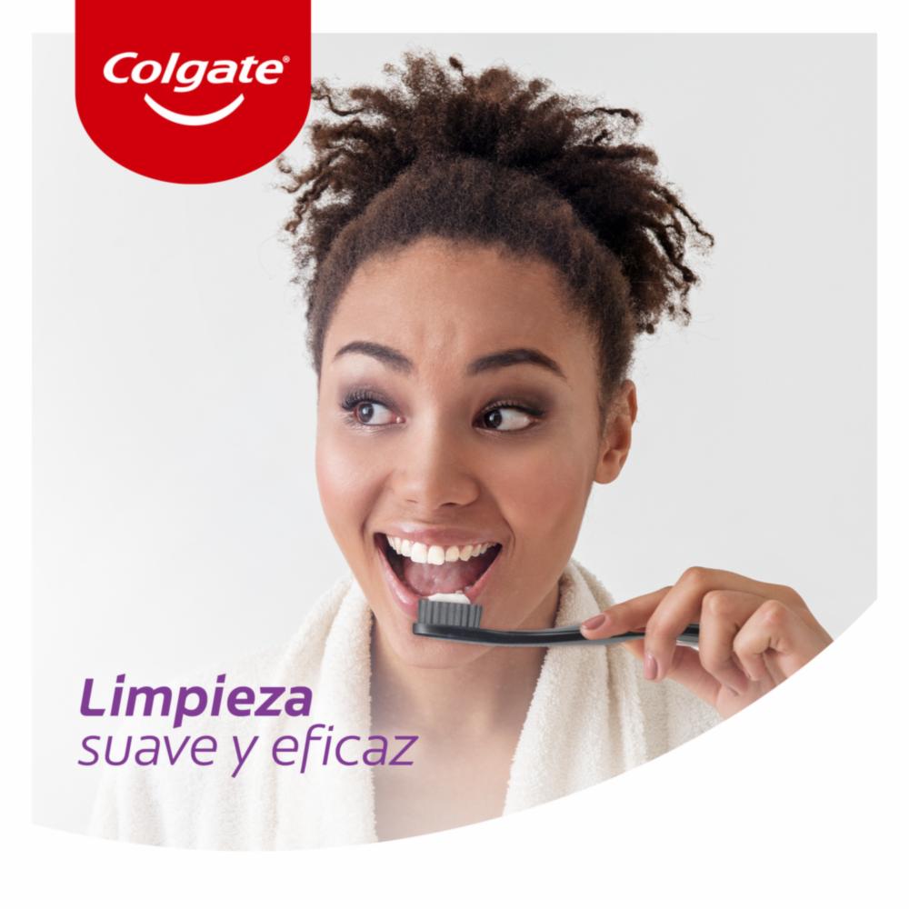 • Este práctico cepillo dental de Colgate, cuenta con cerdas de puntas redondeadas y cuidadosamente pulidas para ser suaves con tus dientes y encías. Por si fuera poco, su diseño con mango ergonómico, te brindará mayor comodidad y control a la hora del cepillado,¡Atrévete a tener una experiencia de limpieza más segura u cómoda! Para obtener una máxima protección dental y tener unos dientes más blancos, sólo debes aplicarle pasta dental