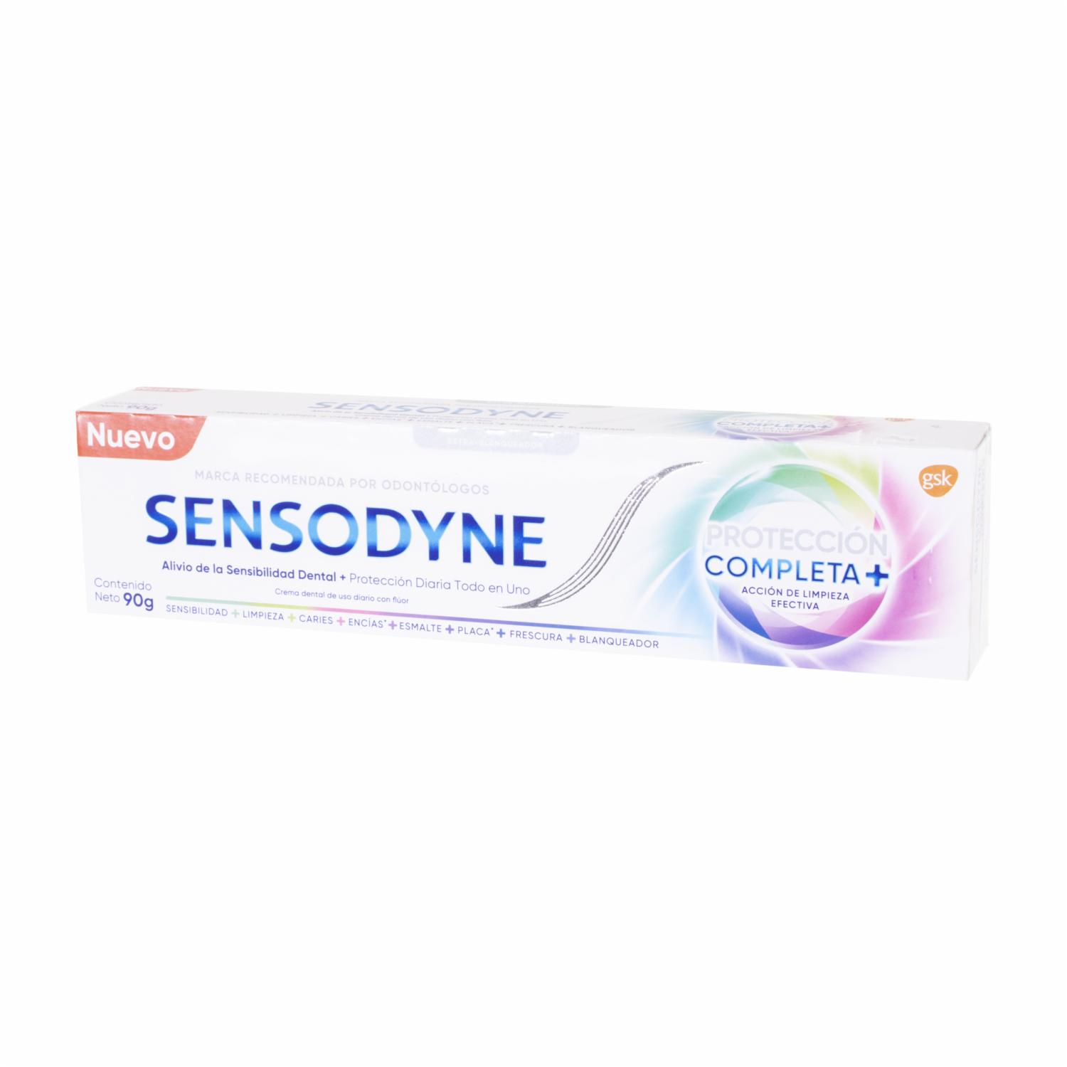 • La crema dental Sensodyne Pasta Dental Protección Completa es un producto diseñado específicamente para tratar y prevenir la sensibilidad dental. Sus características principales incluyen: