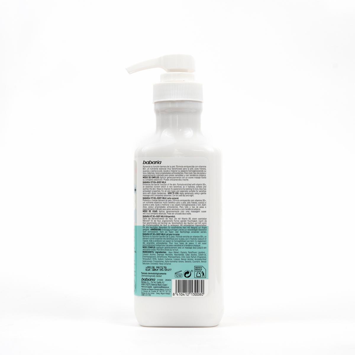 Crema Corporal Con Vitamina B3+ BABARIA 500 Ml – BABARIA. Disponible en nuestros locales. Precio y stock pueden variar según la tienda.