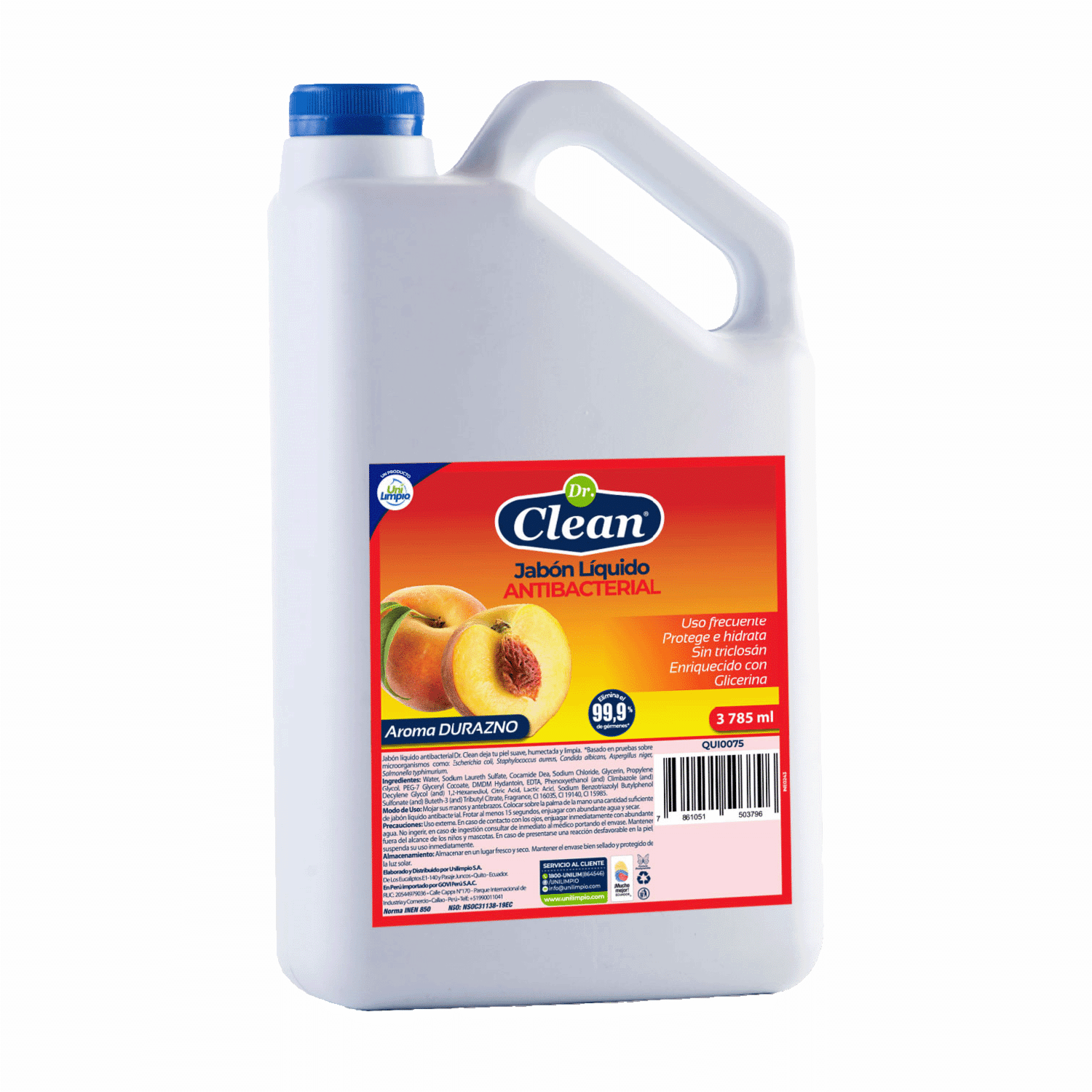 Jabón Líquido Antibacterial Aroma Durazno DR. CLEAN 3785 Ml – DR. CLEAN. Disponible en nuestros locales. Precio y stock pueden variar según la tienda.