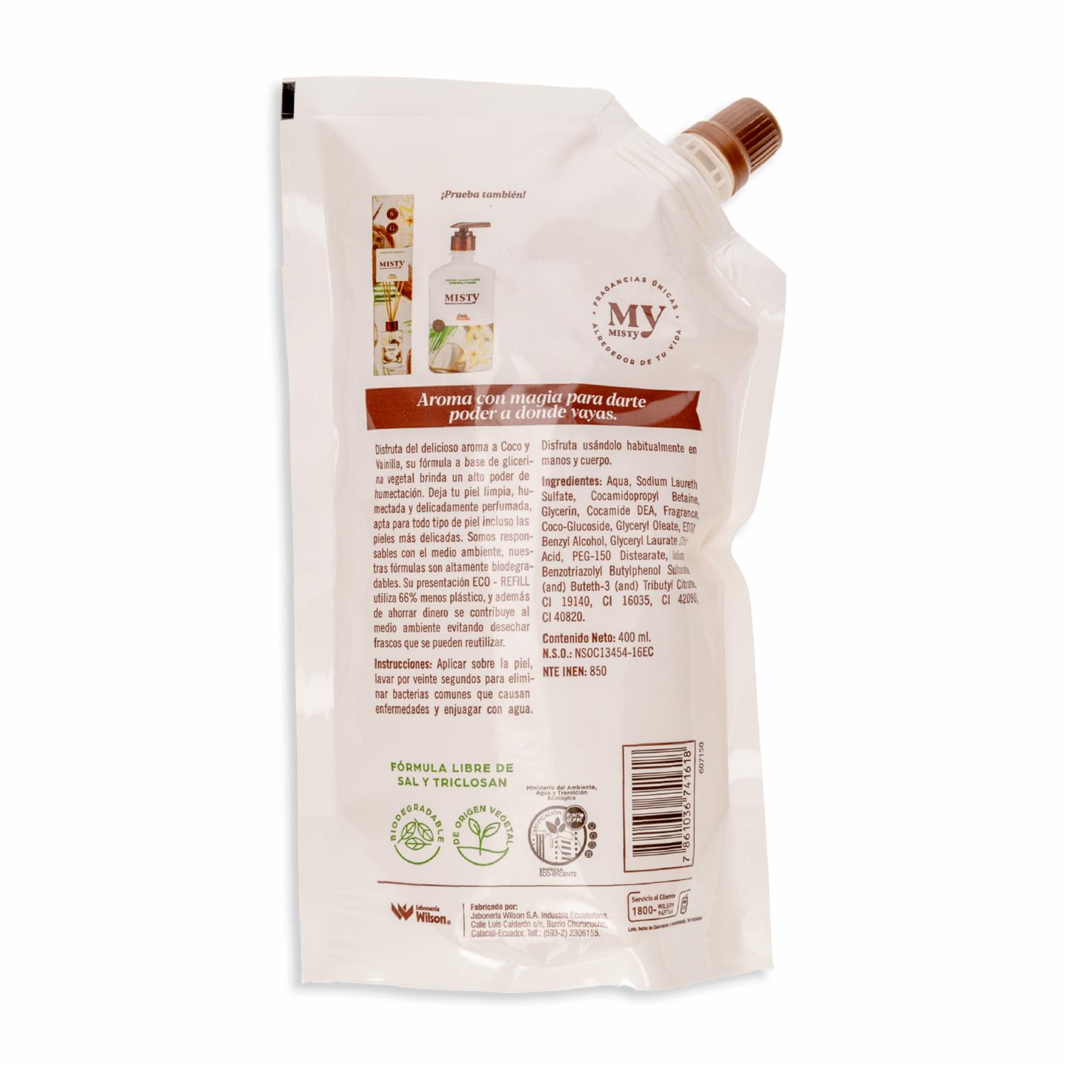 Jabón Liquido Humectante De Coco Y Vainilla MISTY 400 Ml