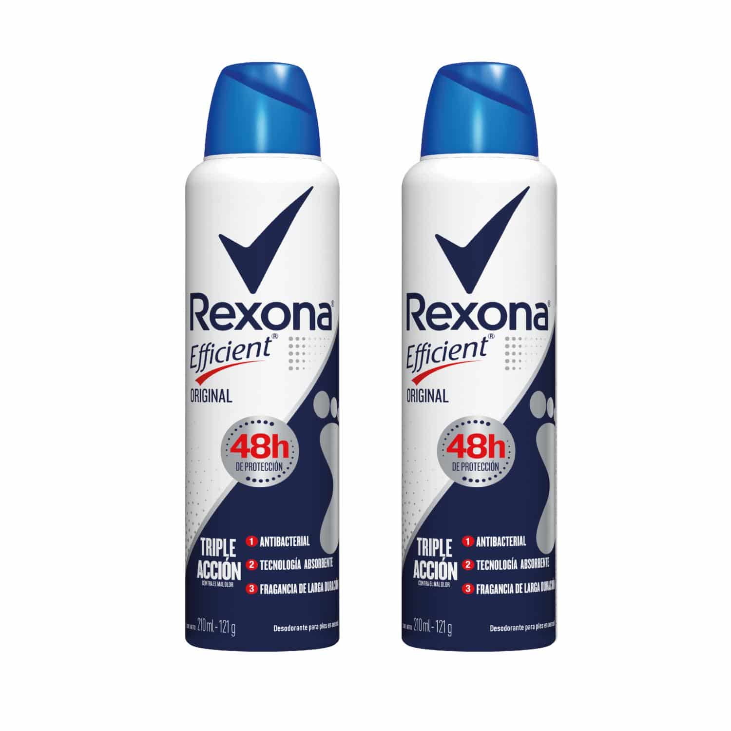 El Nuevo Desodorante Para Pies Rexona Efficient Original En Aerosol Está Especialmente Formulado Para Detener El Sudor Y El Olor Producido Por Los Pies, Su Nueva Fórmula Que Permite Tener 48 Hs De Protección Y Triple Acción Contra El Mal Olor, Tecnología Absorbente, Fragancia De Larga Duración. Aplicá Los Desodorantes Para Pies Diariamente A Tus Pies Limpios Y Secos Antes De Ponerte Los Calcetines Y Los Zapatos, Tus Pies Van A Permanecer Secos Y Sin Olor Durante Todo El Día