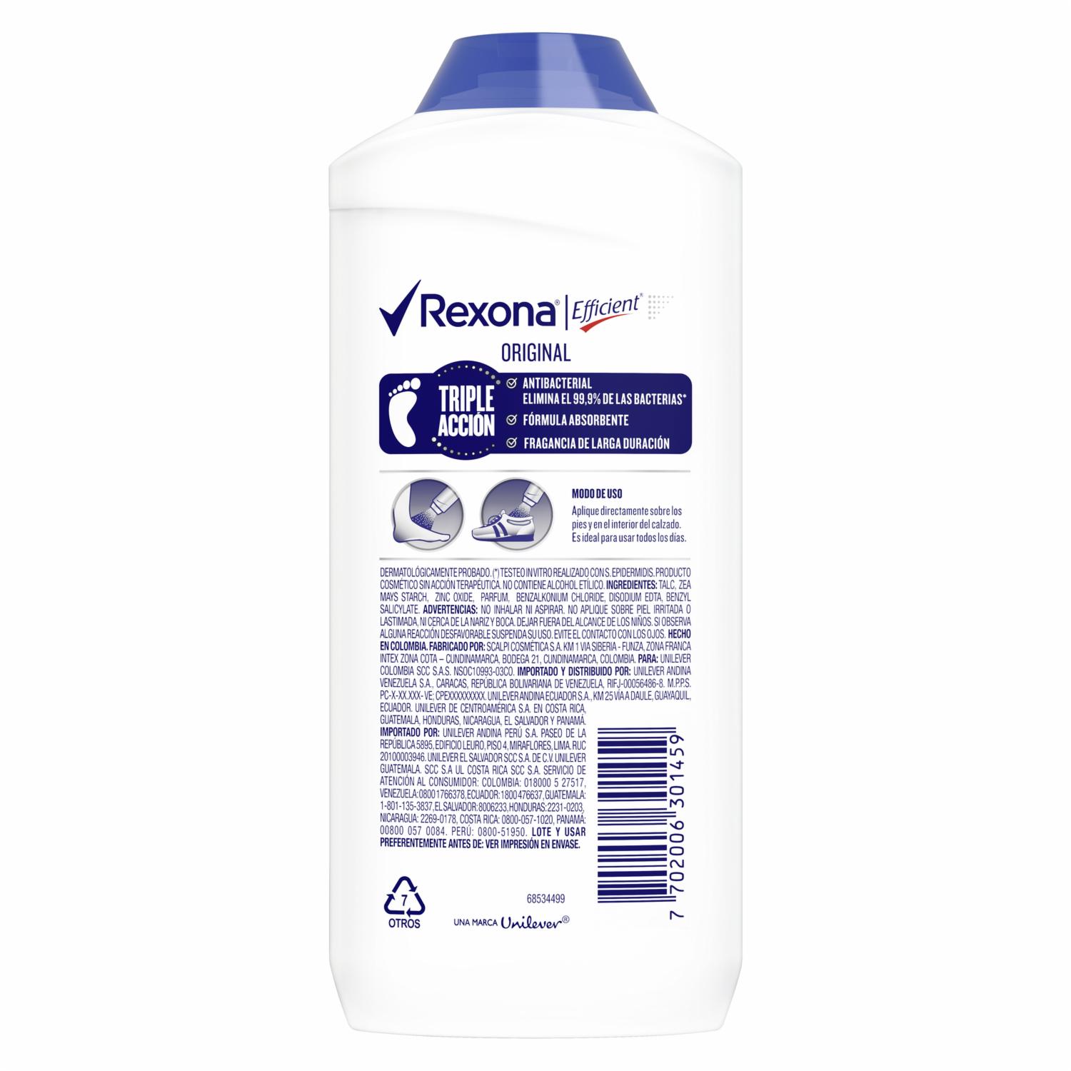 Máxima protección para tus pies, protegiendote del mal olor, gracias a su triple acción: antibacterial, fórmula absorbente y fragancia de larga duración
