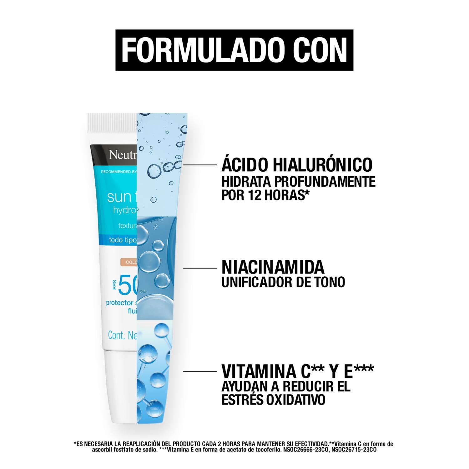 Protector Solar Facial Hydro Boost Ácido Hialurónico Color 2.0 FPS 50+ Sun Fresh NEUTROGENA 40 Ml