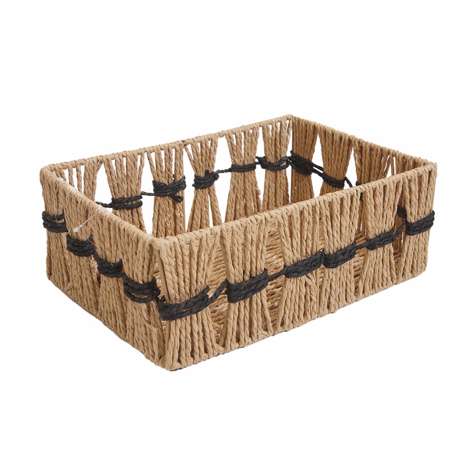 Cesta De Mimbre Rectangular Con Cordón Negro FREE HOME Mediano