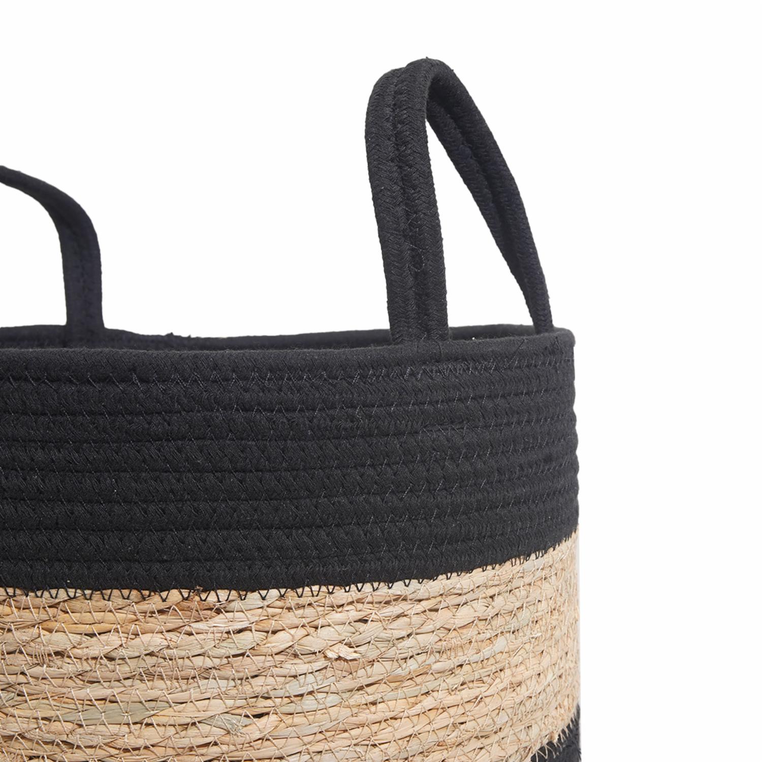 Cesta De Mimbre Redonda Con Agarraderas Y Líneas Negras FREE HOME Mediano