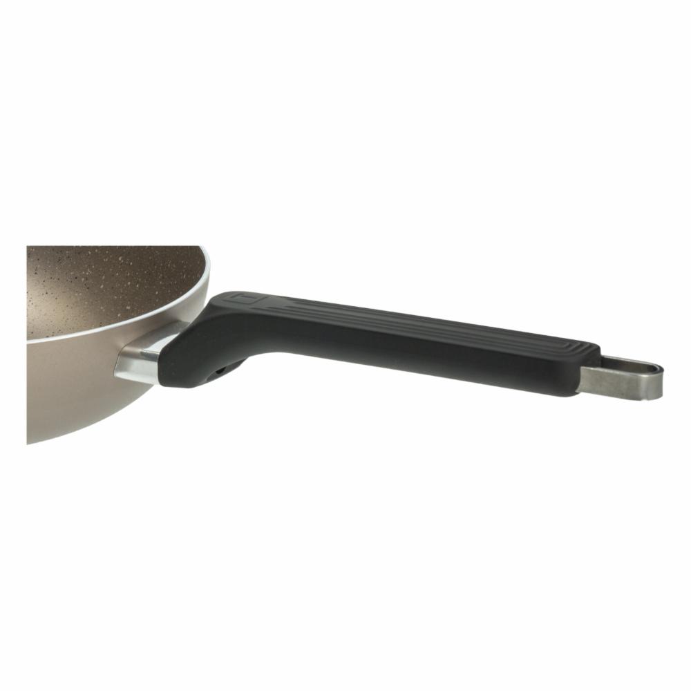 • Su diseño incluye un borde alto y un mango ergonómico, resistente al calor, que facilita un manejo seguro
