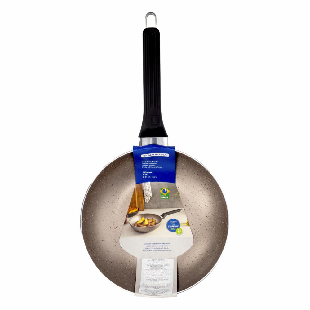 • La Sartén Hondo Malazo de Tramontina, con un diámetro de 24 cm, es ideal para preparar platos que requieren mayor profundidad, como guisos, salteados o frituras