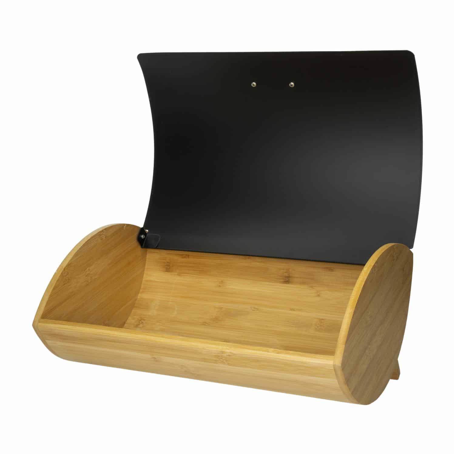 Panera De Bambú Con Tapa Negra De Metal FREE HOME 35.5x17x28 Cm