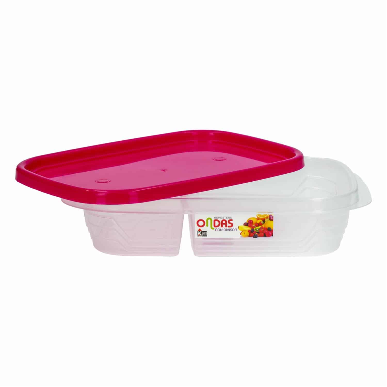 • Repostero Ondas Con Divisor Fucsia CASA PICA Organiza tus alimentos fácilmente con su divisor interno que permite separar porciones sin mezclarlas