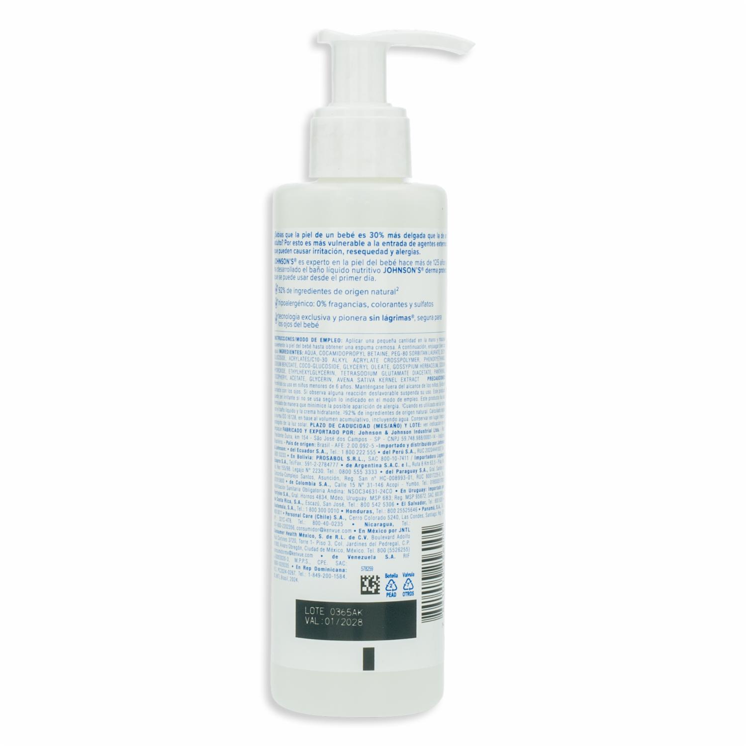 Baño Líquido Derma Protect Nutritivo Para Bebé Todo Tipo De Piel JOHNSON’S 200 Ml