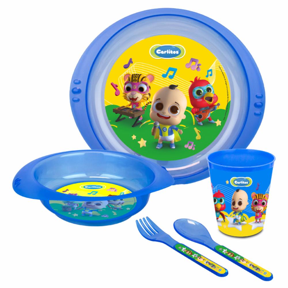 Vajilla Infantil 2 Platos + Cuchara + Tenedor + Vaso CARLITOS X 5 Uds