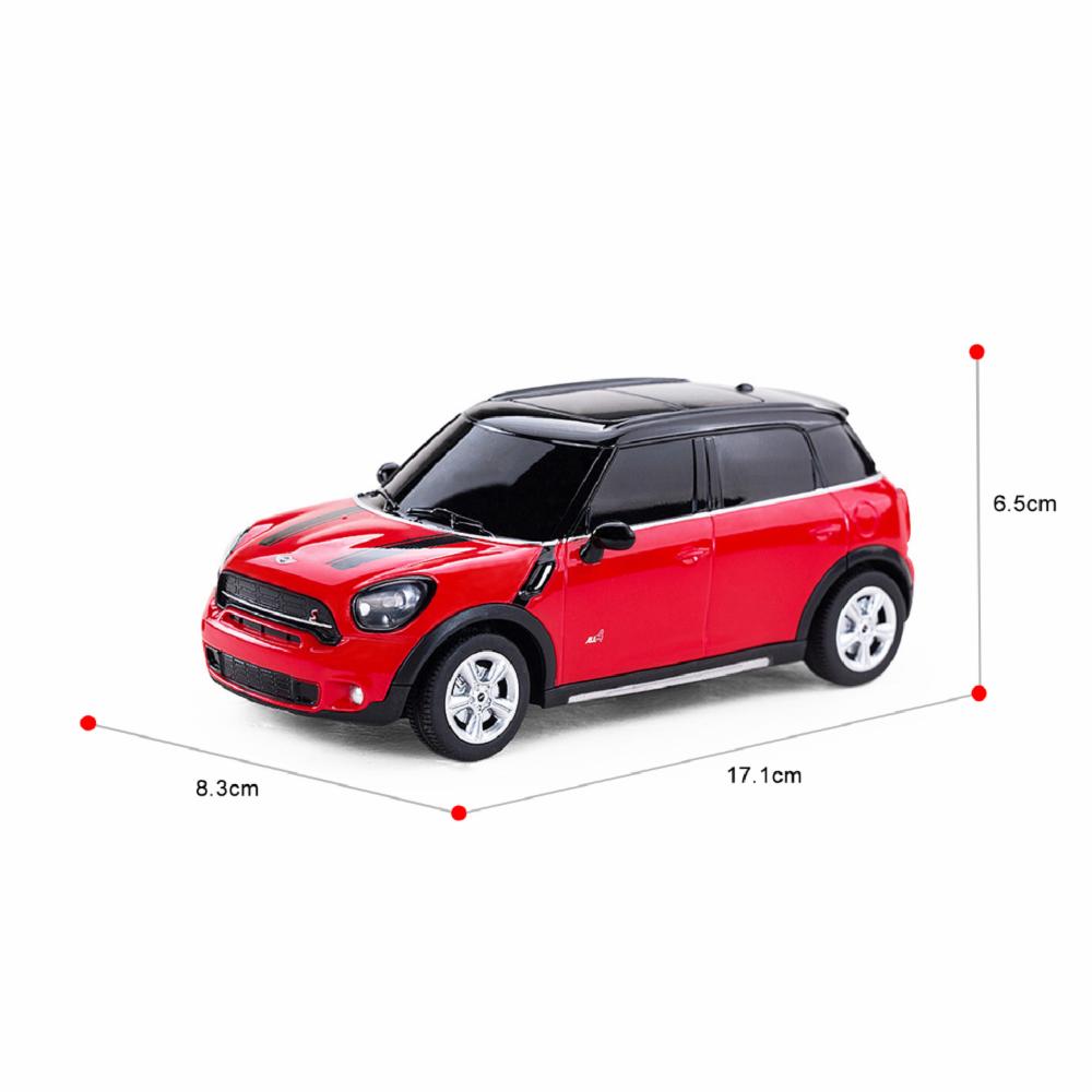 Mini Cooper S Countryman está diseñado para los amantes del lujo y las altas velocidades. Se realiza una copia en miniatura manejable y realista de un automóvil real con detalles precisos en una escala de 1:24. La máquina es controlada por un control remoto. La máquina se mueve hacia adelante y hacia atrás, gira a la derecha, a la izquierda y se detiene. Las ruedas del juguete están recubiertas de goma y brindan un andar suave, la máquina no daña el revestimiento del piso