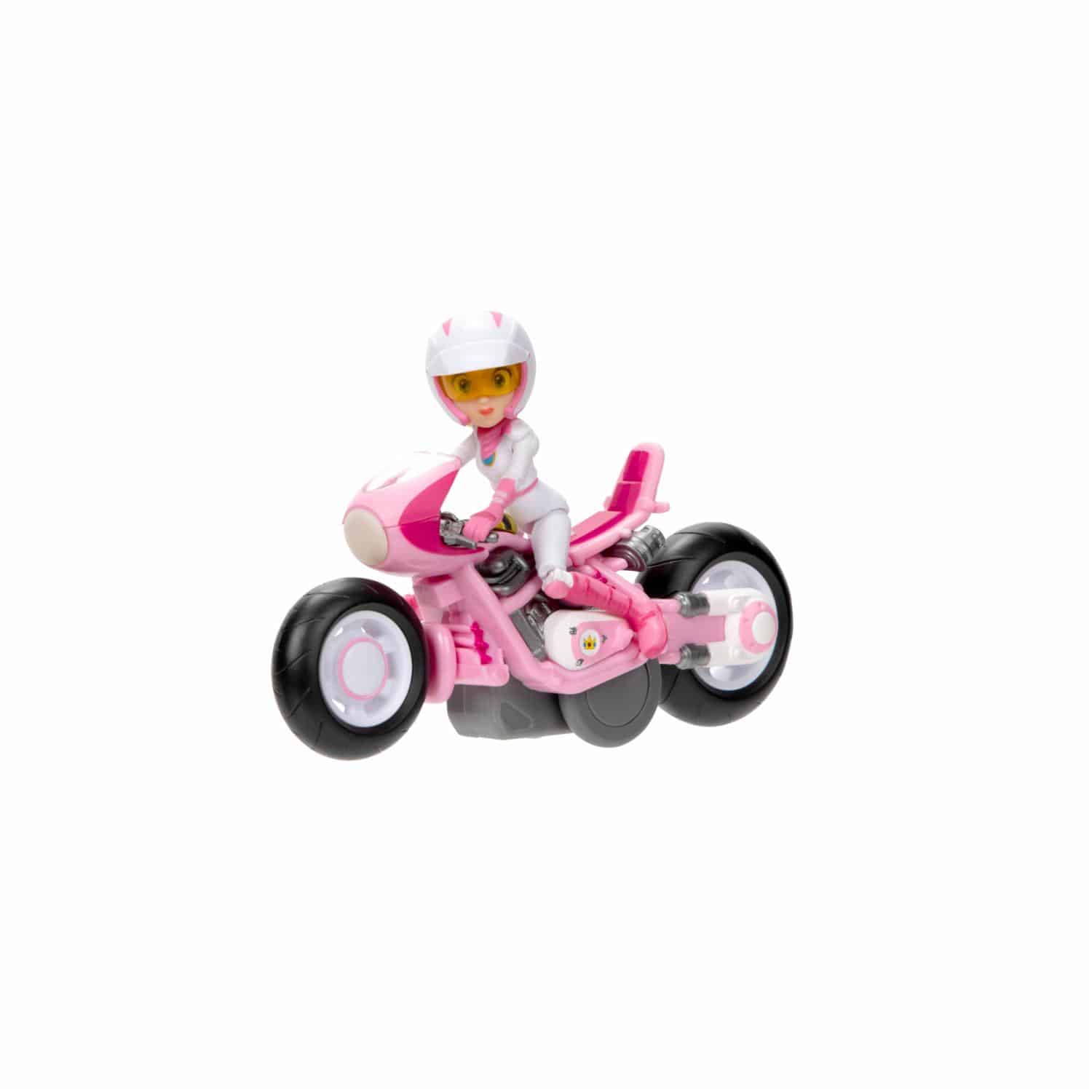 Colecciona a tus personajes favoritos con la figura de Super Mario Bros. Movie 2.5 con corredores extraíbles. Inspirada en la película, la figura de Peach tiene una articulación única que le permite sentarse en su motocicleta