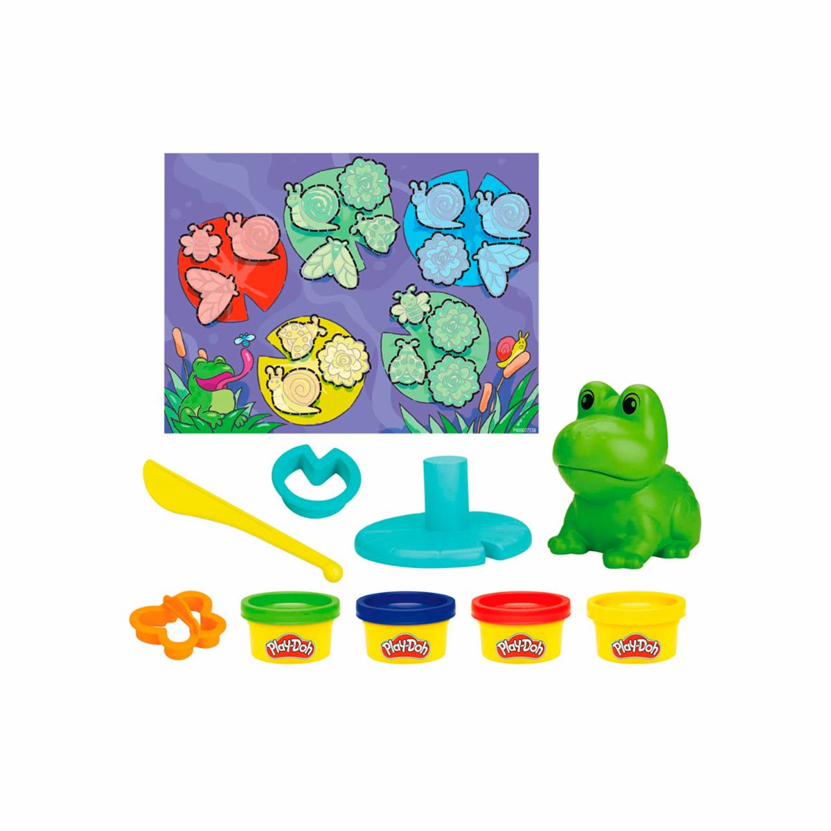 El set Primeras creaciones con la rana y los colores permite realizar actividades creativas a niños a partir de 3 años. Pueden hacerle crecer una graciosa lengua a la rana de juguete y crear insectos de masa con los moldes de la parte inferior del juguete. Además, pueden crear nenúfares y mariposas con los cortadores y los 4 colores de masa Play-Doh que vienen en latas de 28 gramos. ¡Disfruta de la creatividad y la diversión en Juguetón, donde la imaginación y el juego se unen!