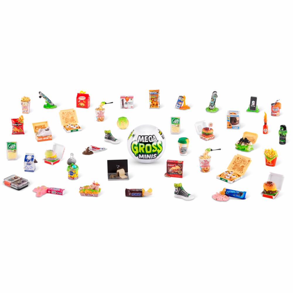 ¡Estos Minis son tus marcas favoritas hechas GROSS! Cada cápsula contiene 5 sorpresas dignas de vomitar que te harán sentir verde. ¡Hay más de 36 Minis de parodia para coleccionar, incluidos Minis raros mohosos, tóxicos que brillan en la oscuridad y con aromas apestosos! Mega Gross Minis: ¡tus marcas favoritas hechas en bruto!