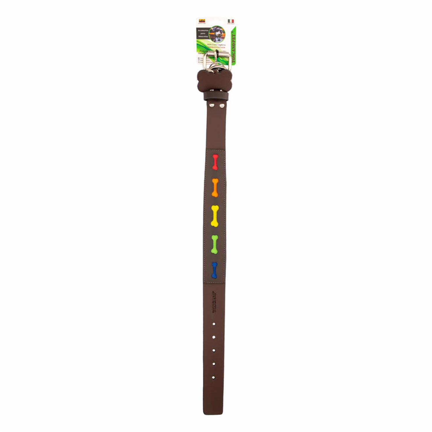 Collar Para Mascota De Cuero Huesitos Arcoíris Medium TOSCANO PET 50Cm