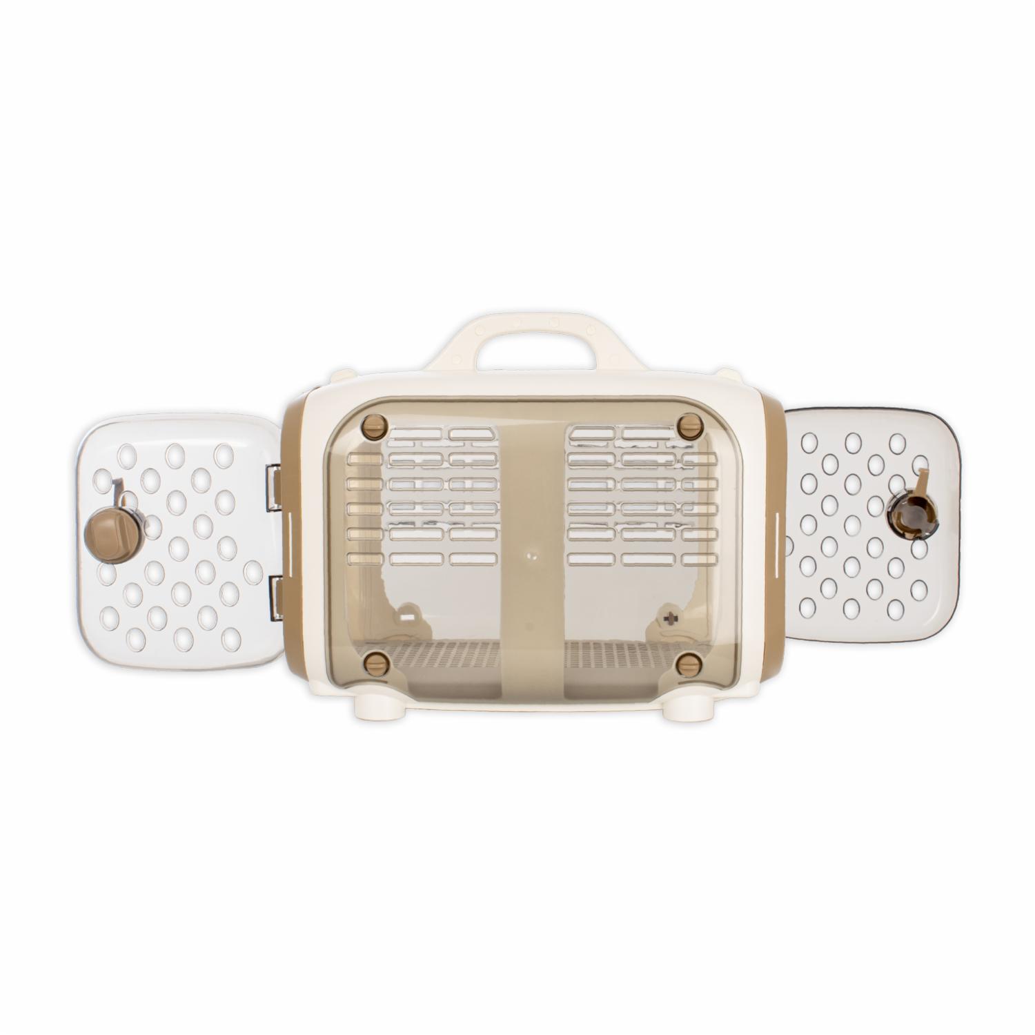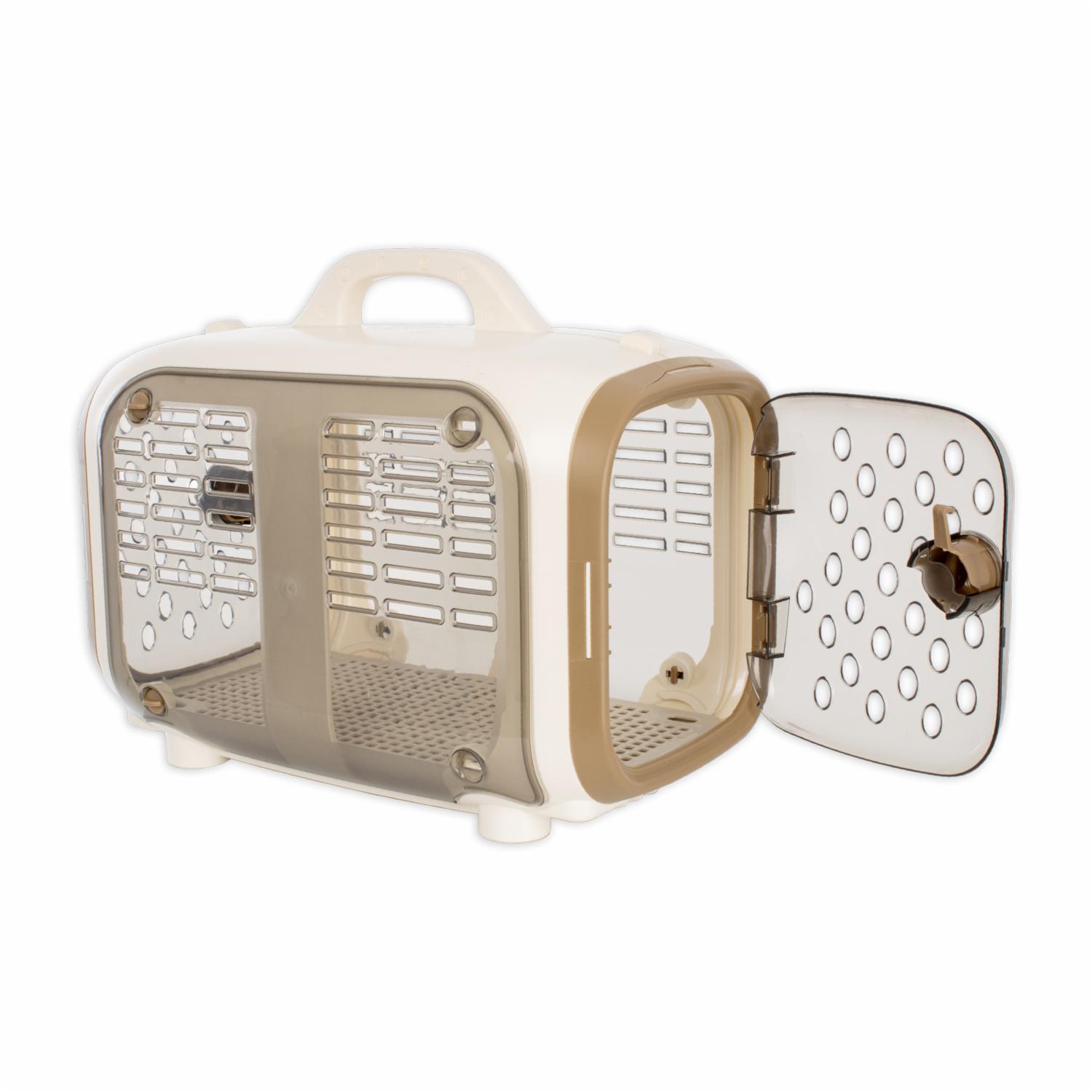 Esta diseñada para proporcionar un espacio cómodo y seguro donde tu mascota puede descansar durante el viaje. Estas transportadoras dispone asas para facilitar su transporte, así como aberturas de malla para que tu mascota pueda ver el entorno y recibir aire fresco