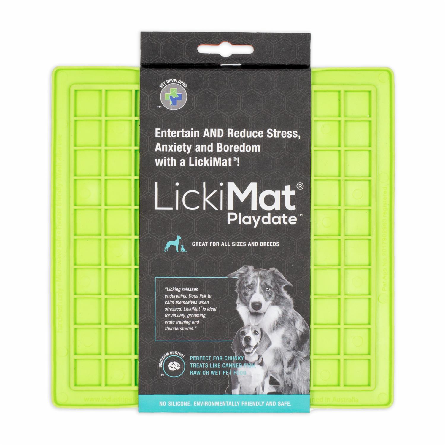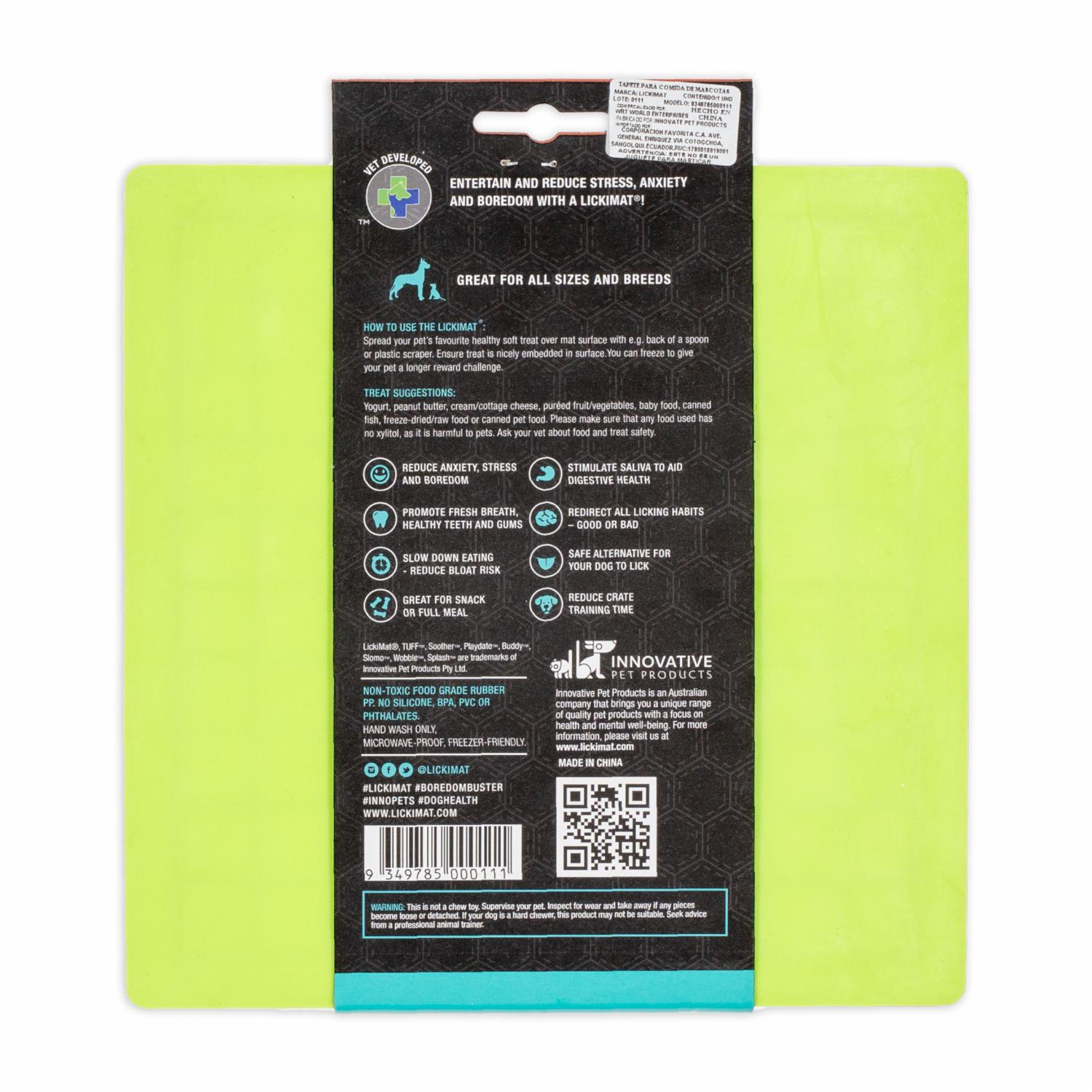 • LickiMat ayuda a calmar a su mascota mientras disfruta de su golosina favorita al ayudar a liberar endorfinas a través de la promoción del lamido