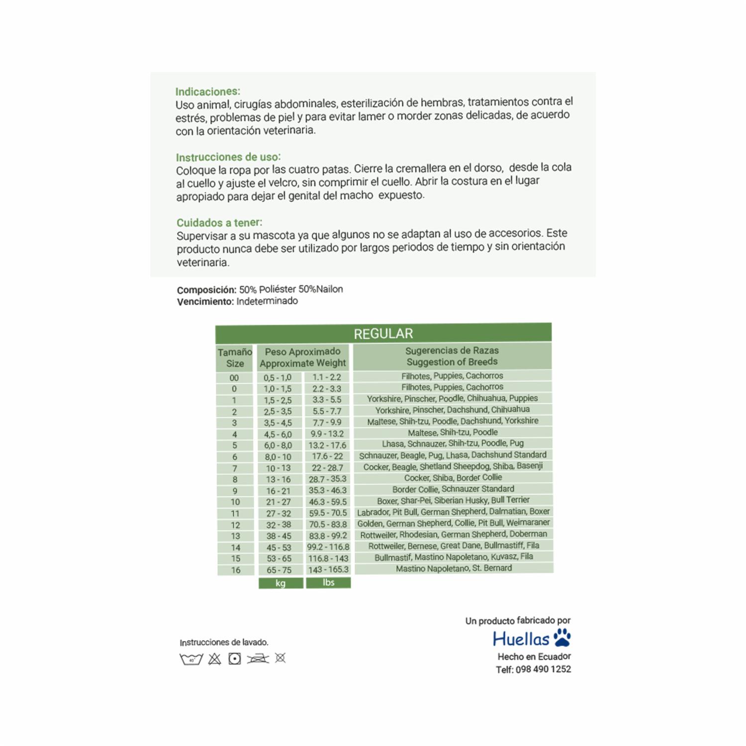 Ropa Para Perro Post Quirúrgica Y Esterilización HUELLAS Talla 8 13.0 – 16.0 Kilos