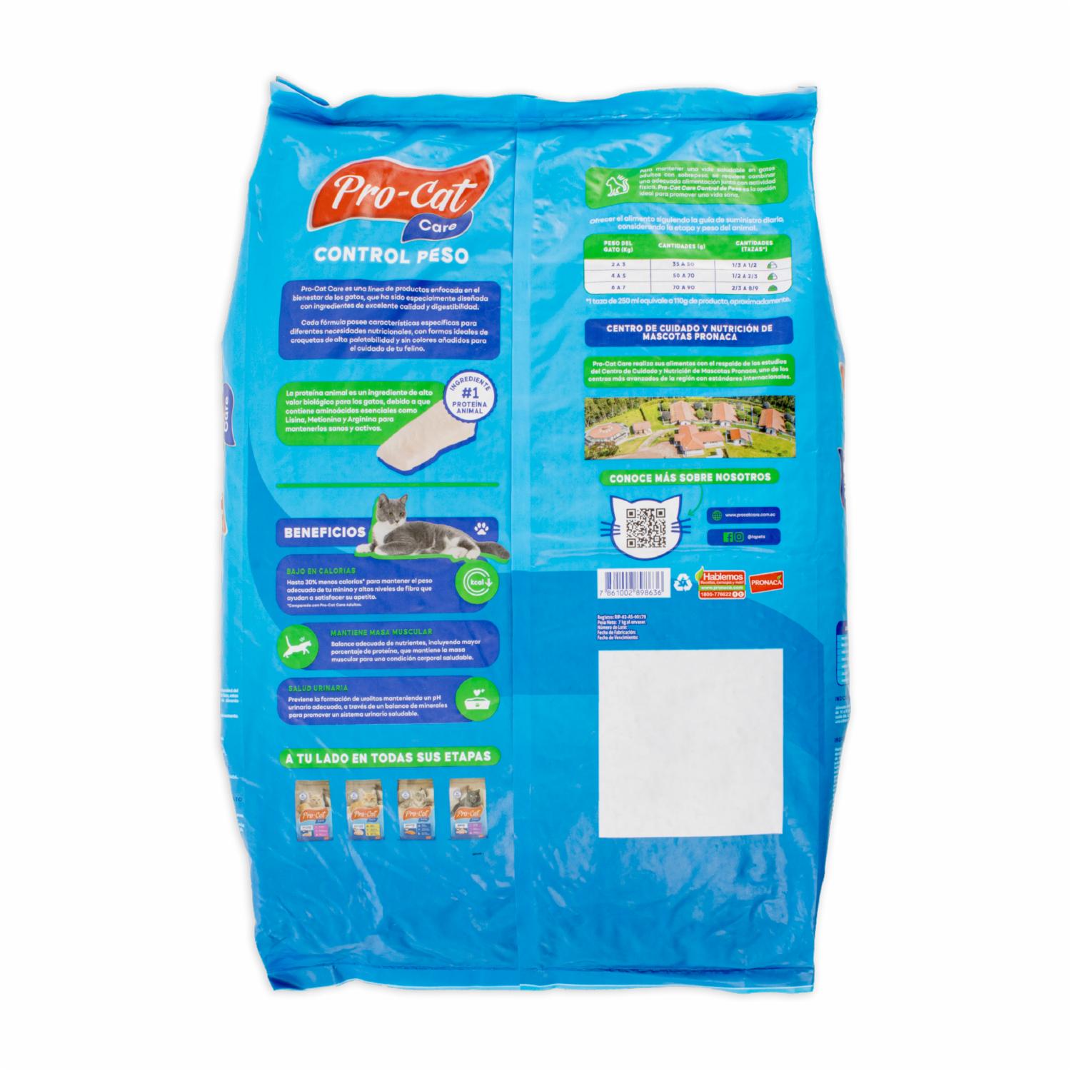 Alimento Para Gatos Care Control De Peso PRO-CAT 7000 G – PRO-CAT. Disponible en nuestros locales. Precio y stock pueden variar según la tienda.
