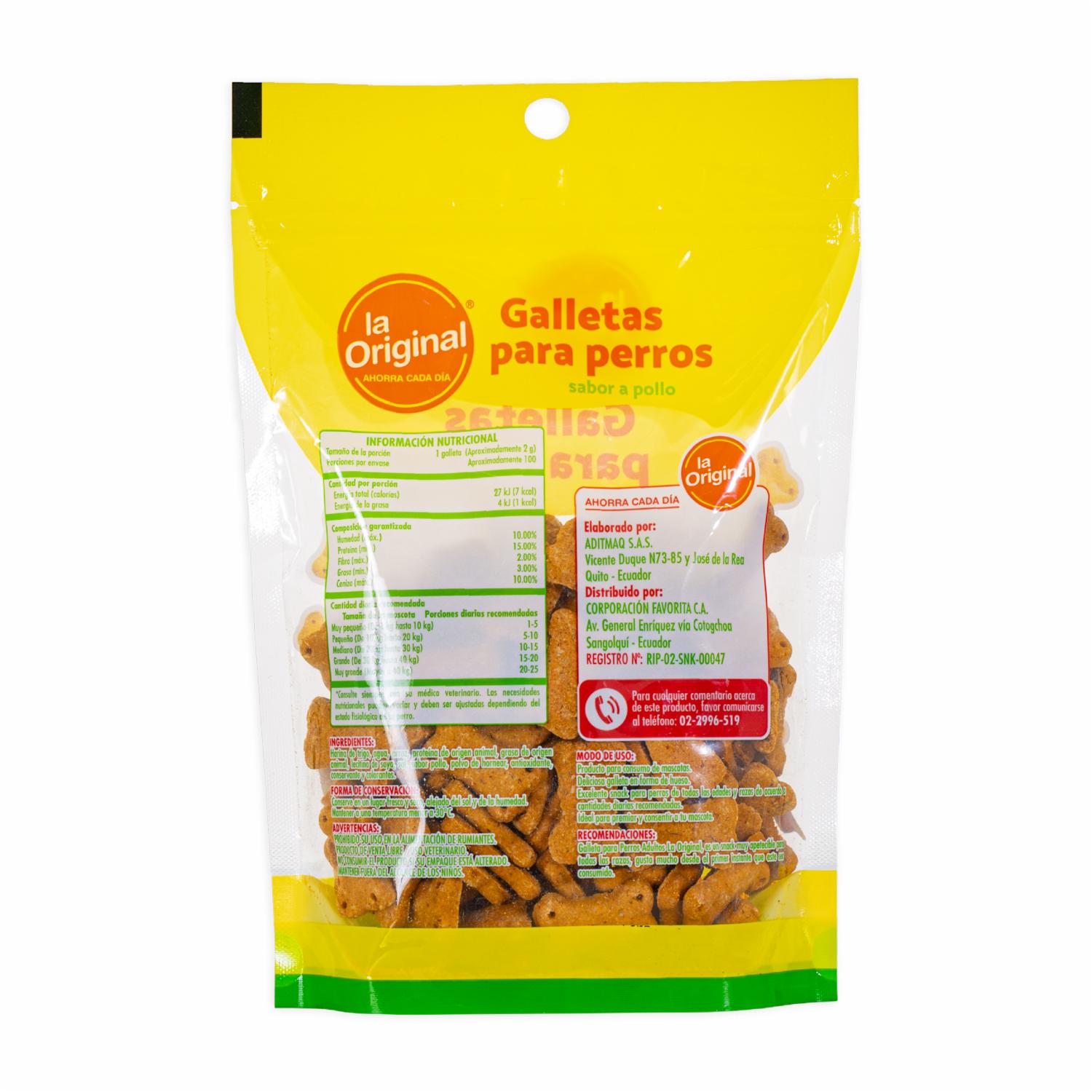 Galletas Para Perros Adultos Toda Raza Y Edad Sabor A Pollo LA ORIGINAL 200 G – LA ORIGINAL. Disponible en nuestros locales. Precio y stock pueden variar según la tienda.