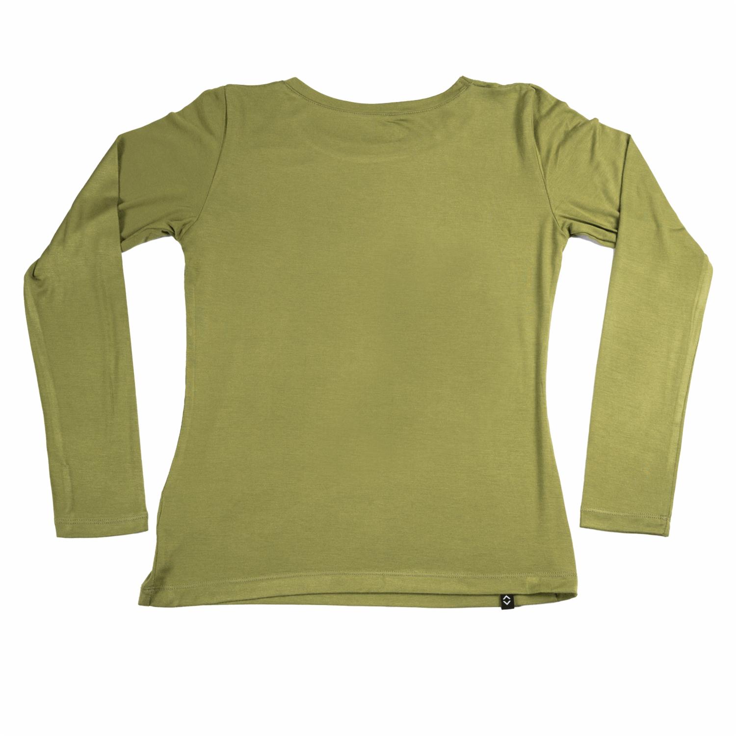 • Camiseta cuello redondo, manga larga MGX BASIC, talla mediana, color verde, para dama
