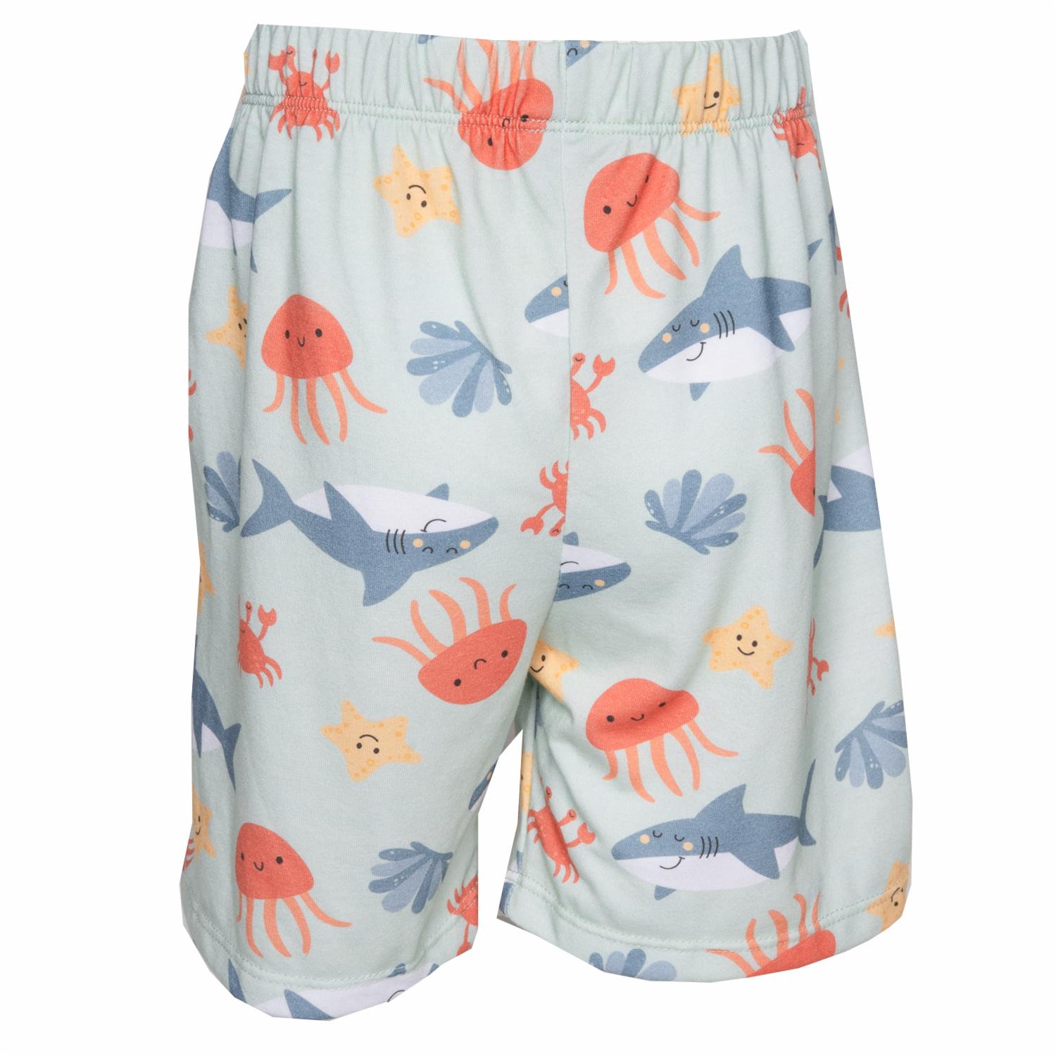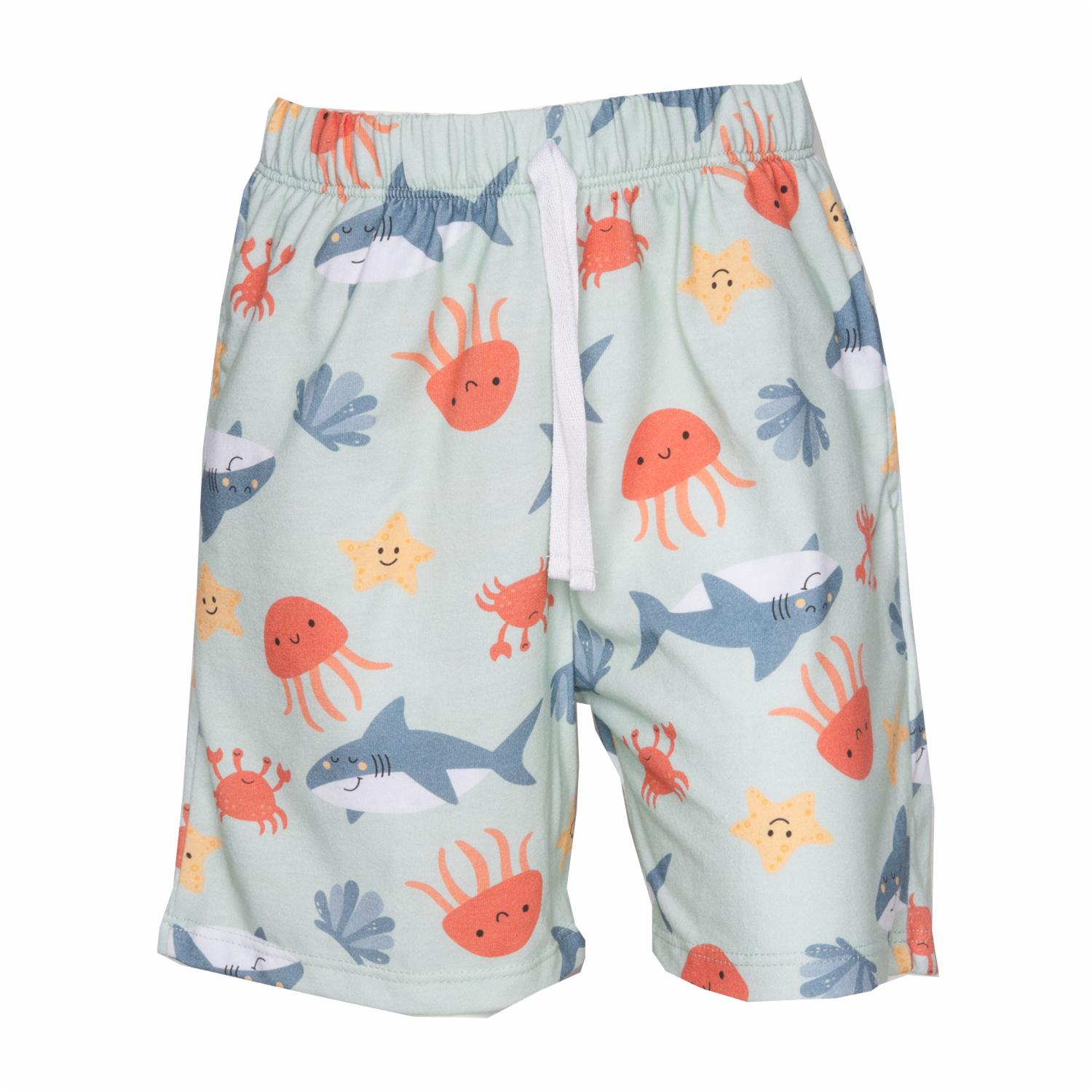 Es perfecto para los niños que disfrutan de la comodidad y el estilo fresco. Su estampado inspirado en el océano lo hace divertido y original para looks veraniegos. Ideal para días de juego o salidas casuales. Características Cintura elástica con ajuste cómodo Tela ligera y suave Pensado para niños activos