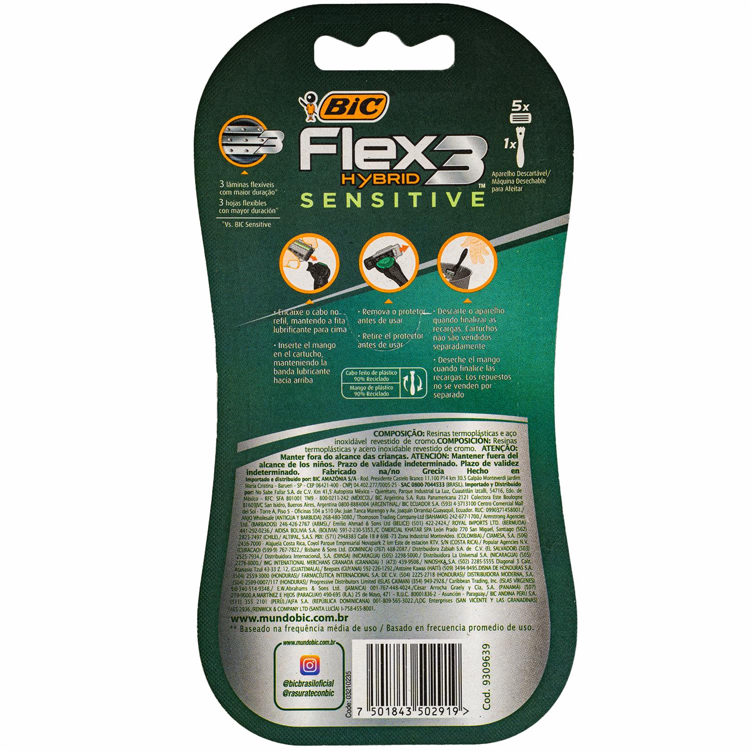 • La afeitadora desechable Hybrid Flex 3 Sensitive de BIC está diseñada para proporcionar un afeitado cómodo y eficaz, especialmente para pieles sensibles