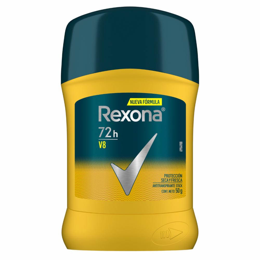 • Experimenta una protección potente y antibacterial con el Desodorante Barra V8 Antibacterial de Rexona en su envase de 50g