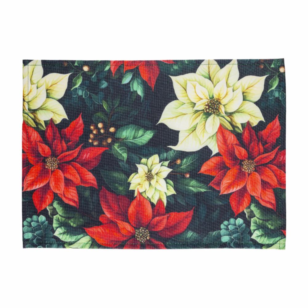 Individual Navideño Textil Ponsetias Rojo Con Blanco KIKEMAR 45 X 32 Cm