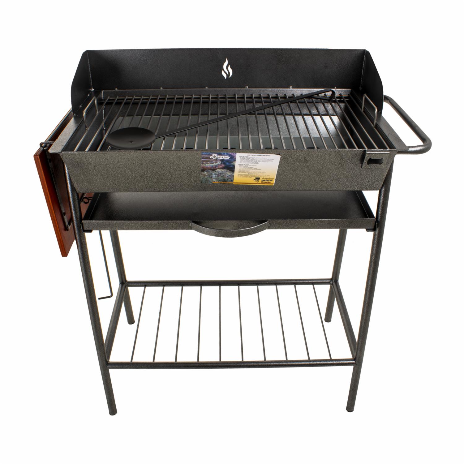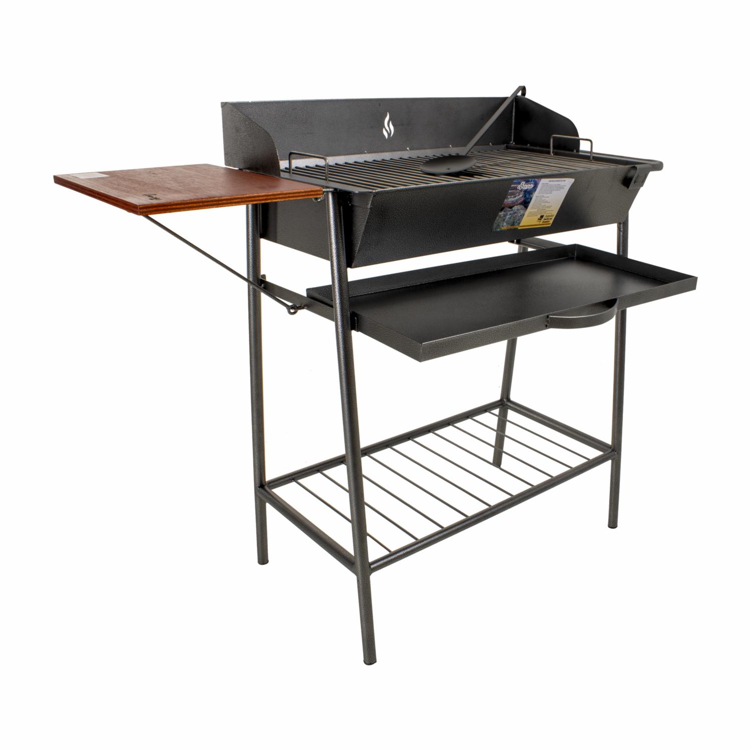 Parrilla De Carbón Con Repisa Plegable De Madera ARTE VALLE Mediana