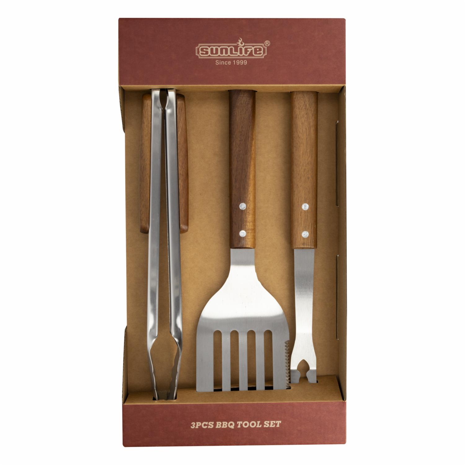 Set Utensilios Trinche Espatula Y Pinza Para BBQ SUNLIFE 3 Piezas