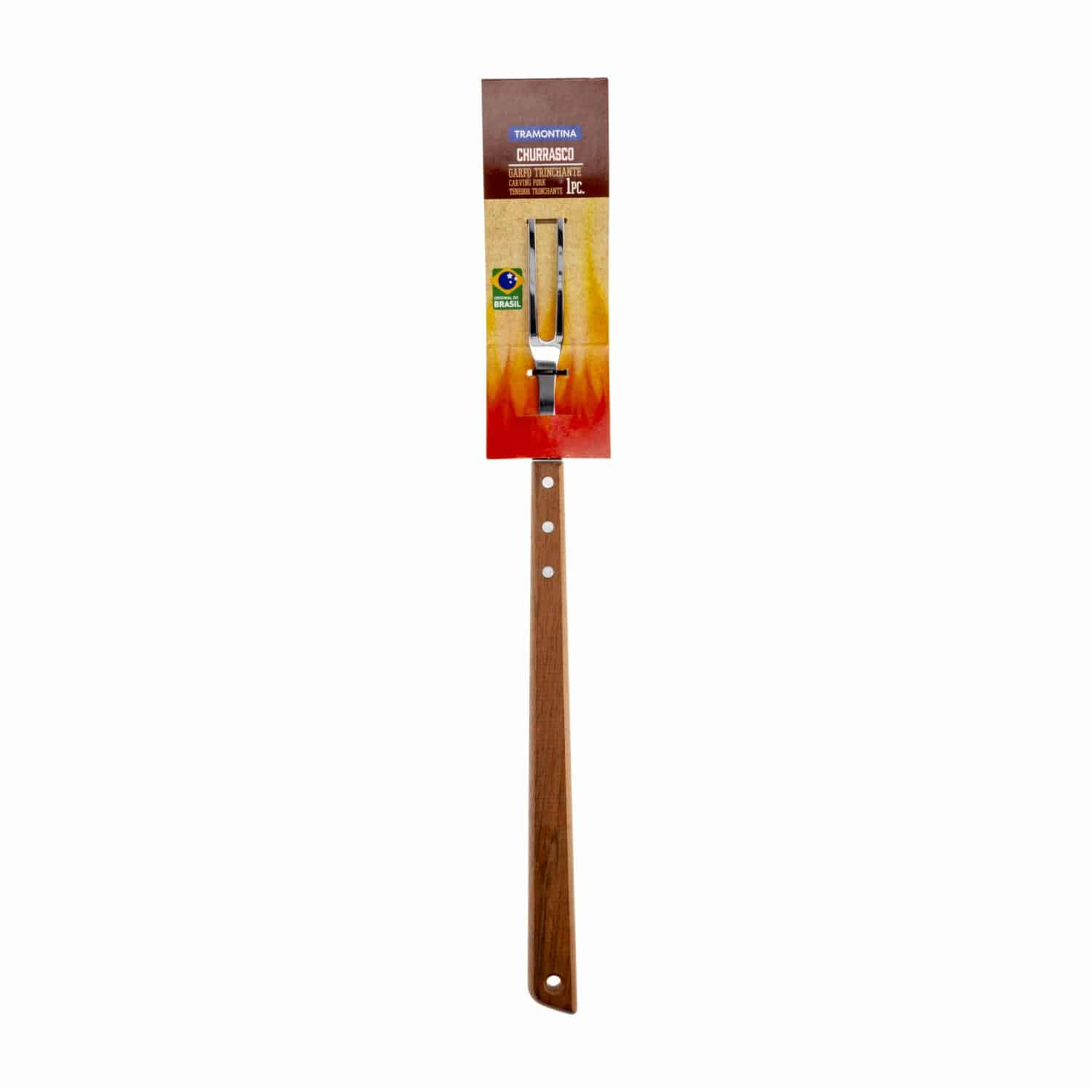 • El tenedor trinchante Tramontina Churrasco con lámina de acero inoxidable y mango de madera de 46 centímetros le ayudará a hacer que su asado sea perfecto
