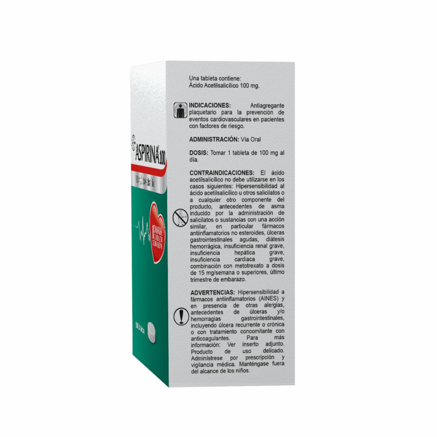 Aspirina® 100 Ayuda A Prevenir 1 De Cada 3 Infartos En Pacientes De 40 A 70 Años Con 2 O Más Factores De Riesgo Como Sobrepeso, Sedentarismo, Tabaquismo, Tensión O Colesterol Altos, Debido A Que Es Un Antiagregante Plaquetario, El Cual Inhibe La Formación De Coágulos En La Sangre. Esta Acción Es Muy Relevante En La Prevención Primaria Y Secundaria De Enfermedades Cardiovasculares