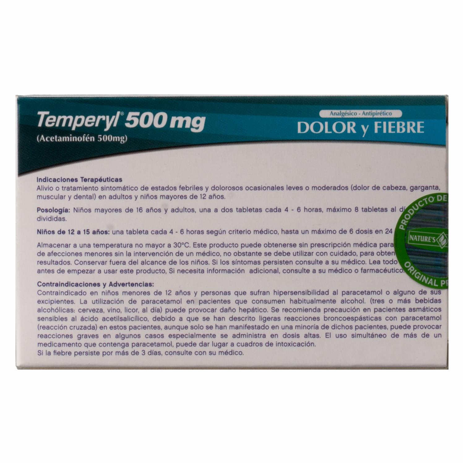 Paracetamol Temperyl Tableta NATURE’S GARDEN 40 Tabletas