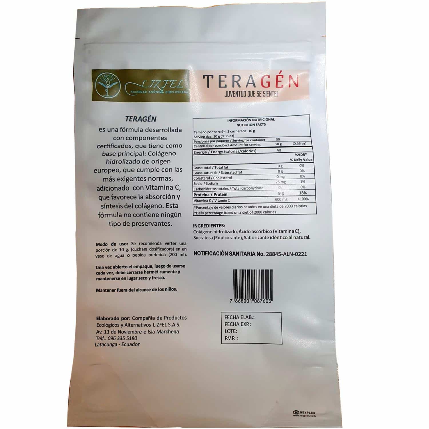 Colageno Hidrolizado Con Vitamina C TERAGÉN 300 G