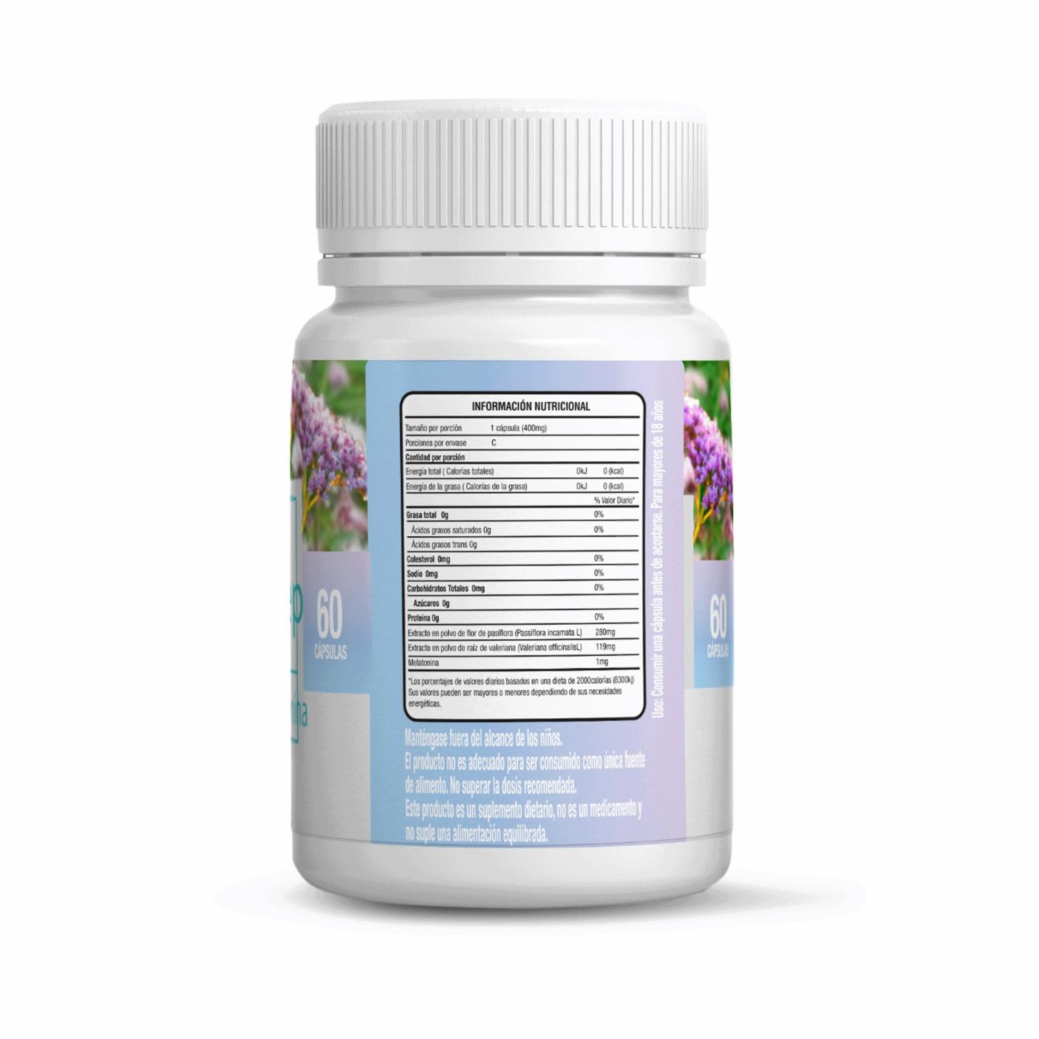 Vitahealth relax and sleep en cápsulas, elaborado con extractos naturales de valeriana, pasiflora, melatonina, ayuda a conciliar el sueño, descansar y disminuye los niveles de estres y ansiedad