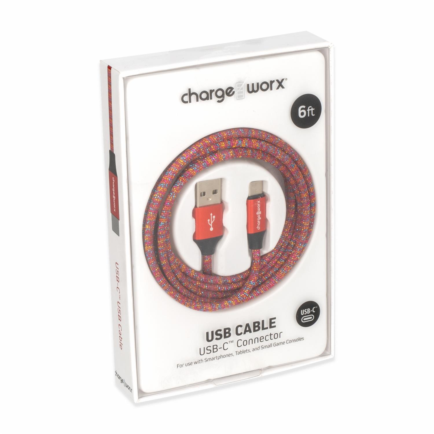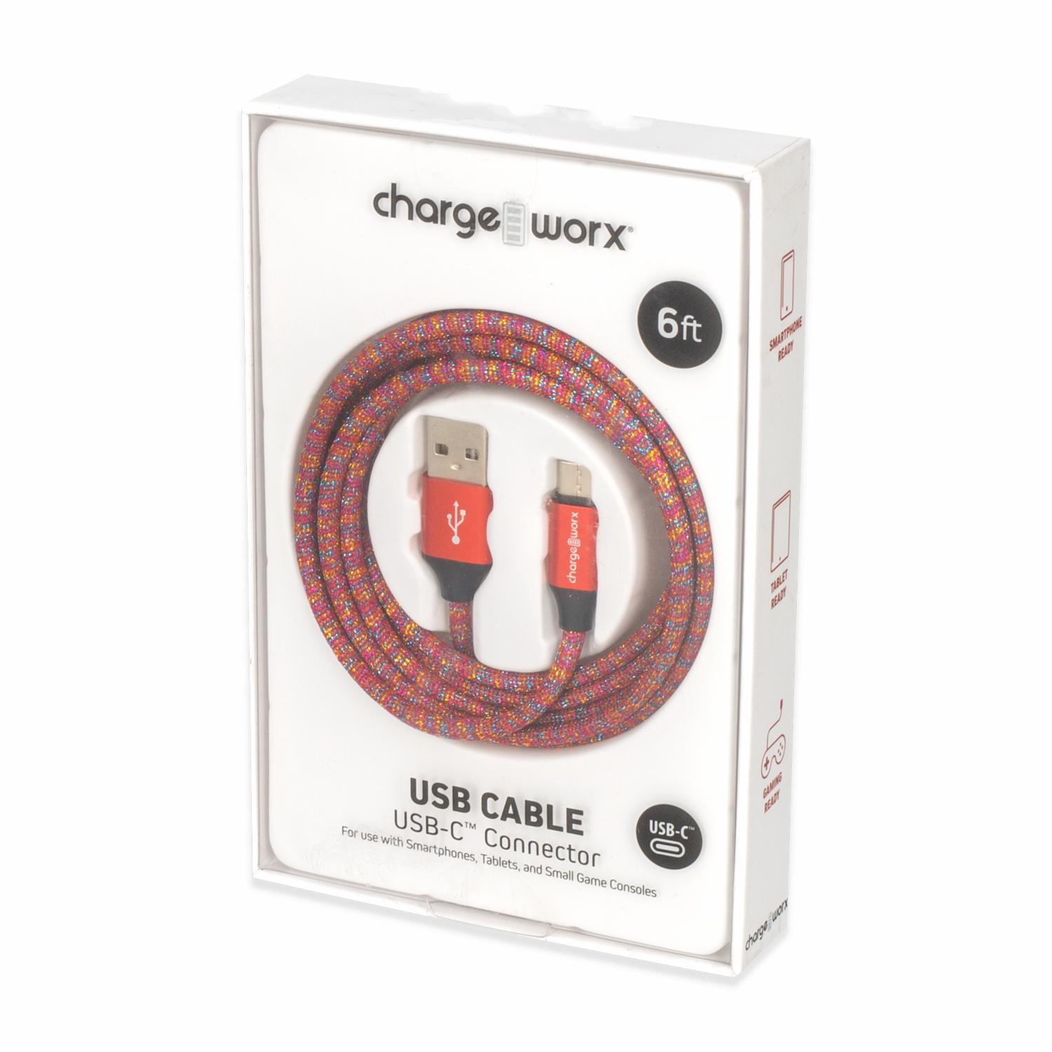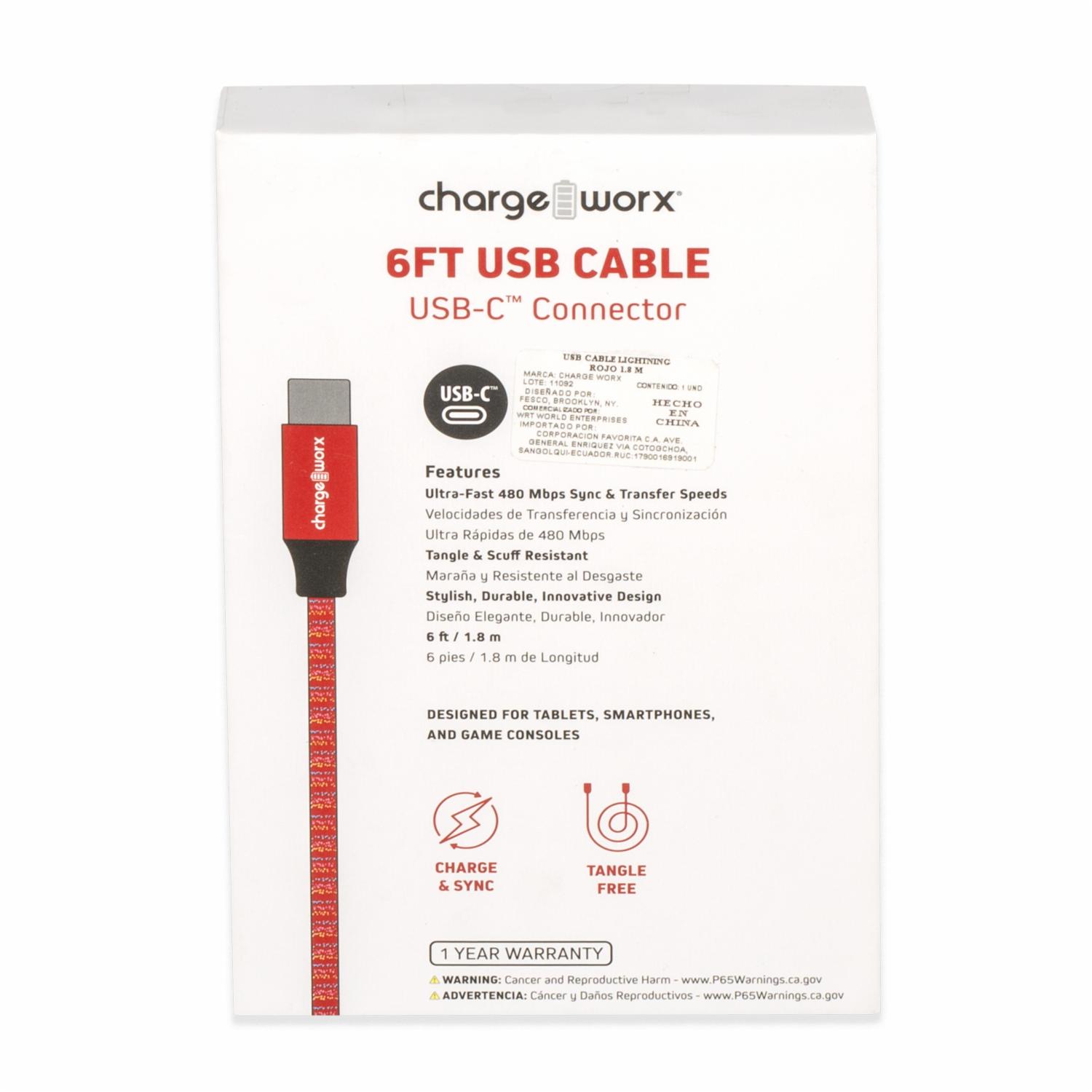 Cable Usb-c Rojo CHARGE WORX 6 Pies