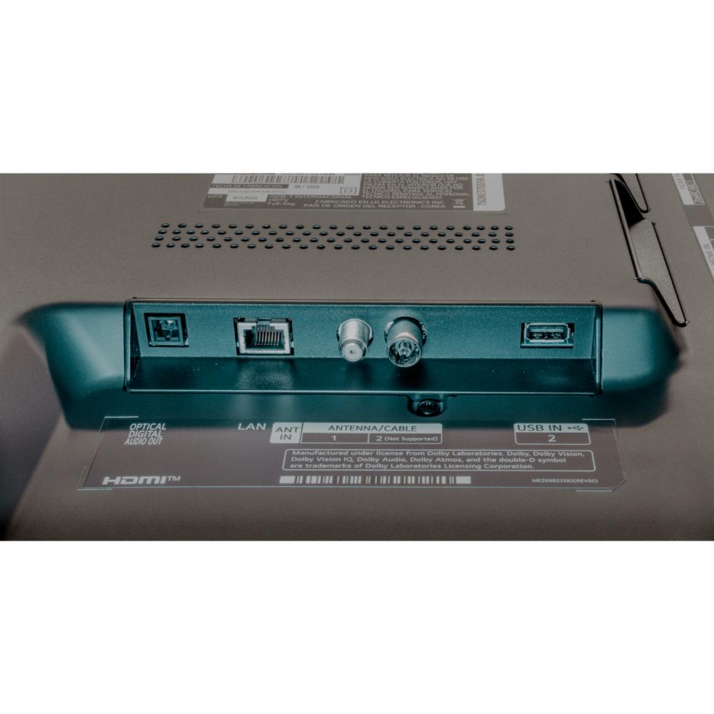 • Características: - Modelo: 50QNED75SRA - Tipo de Pantalla: 4K QNED Ultra HD (3,840 x 2,160) - Acceso a tus Streamings favoritos: LG Channels, Netflix, Apple TV+ y Disney+ - Refresh Rate: 60Hz - Procesador de imagen: Procesador 5 AI 4K Gen6 - HDR (High Dynamic Range): HDR10 / HLG - Operating System (OS): WebOS 23