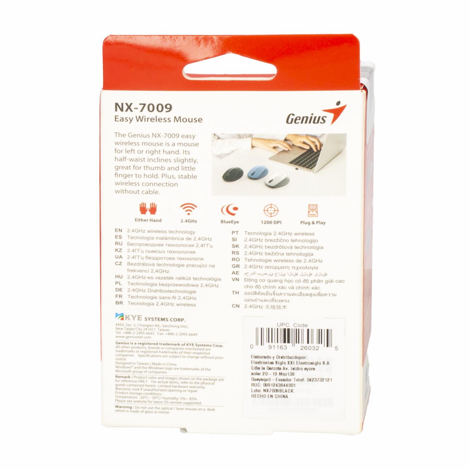 Mouse Modelo NX-7009 1200 DPI Negro GENIUS Inalámbrica – GENIUS. Disponible en nuestros locales. Precio y stock pueden variar según la tienda.